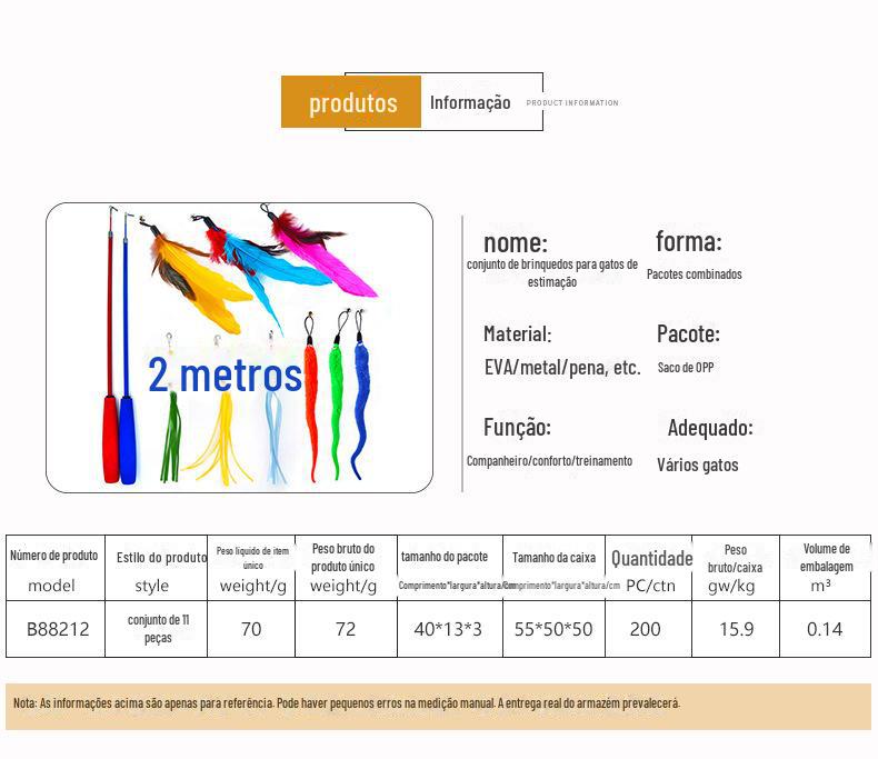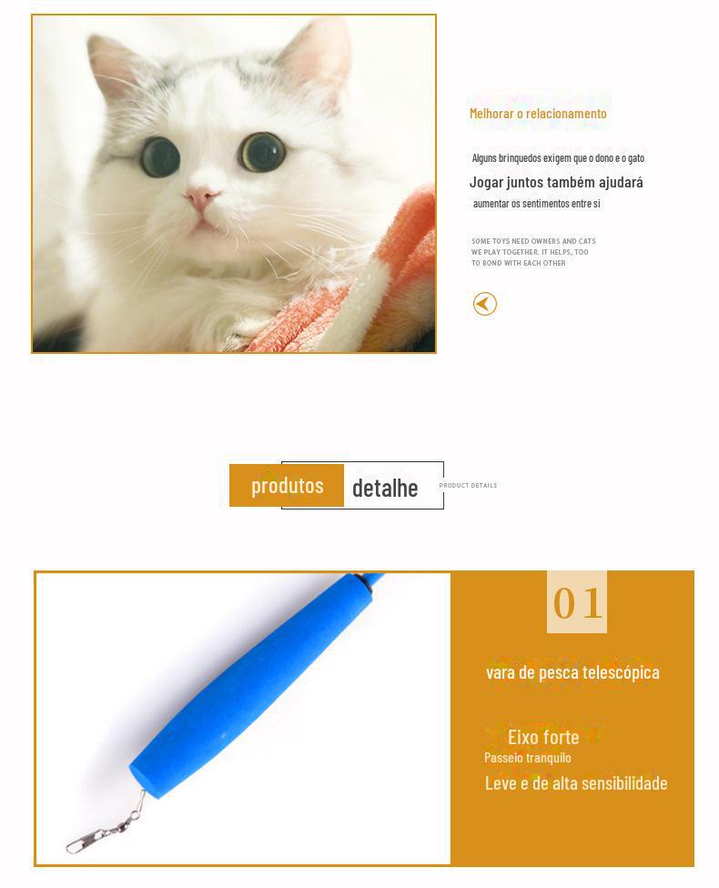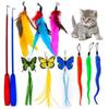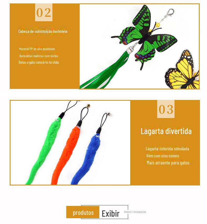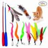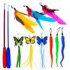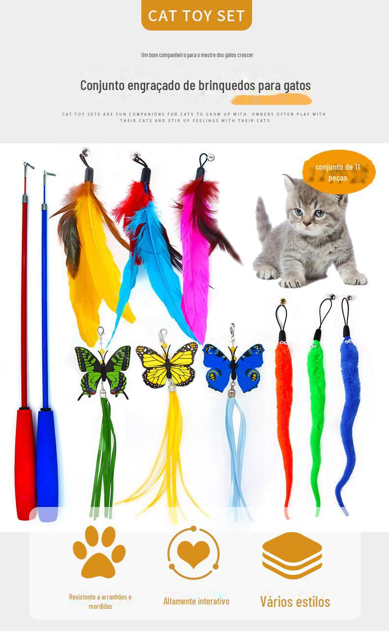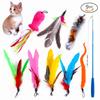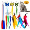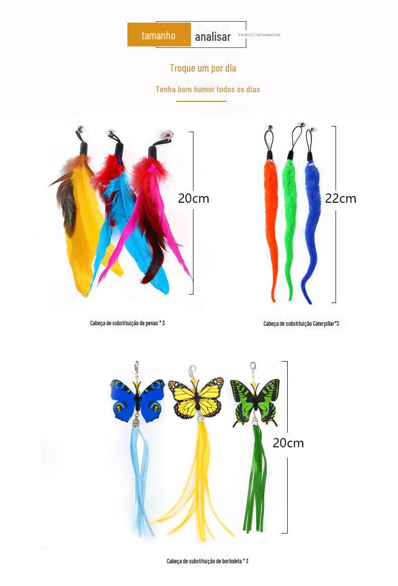 | Novo conjunto transfronteiriço de brinquedos para gatos de estimação, vara de pesca de penas coloridas, sino de lagarta, cabeça substituível, bastão divertido para gatos |
