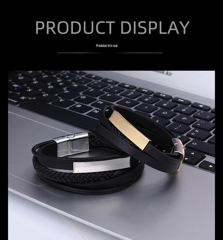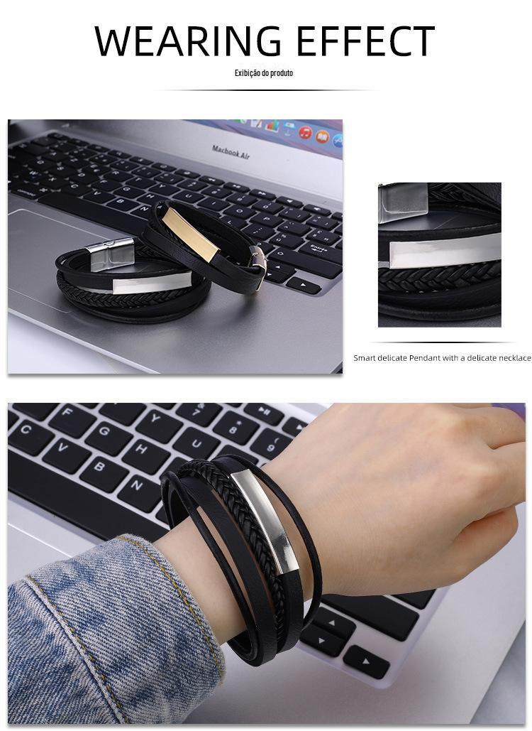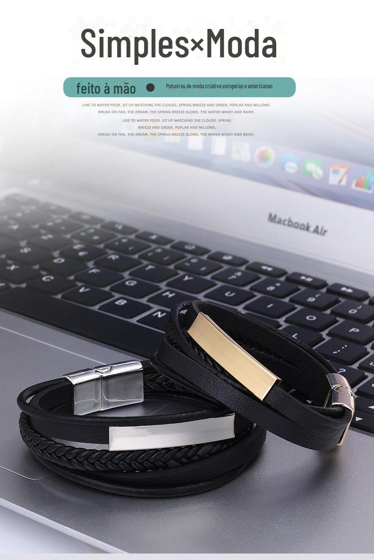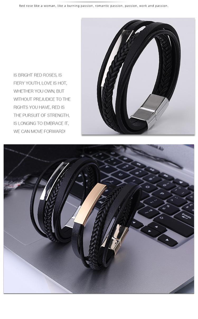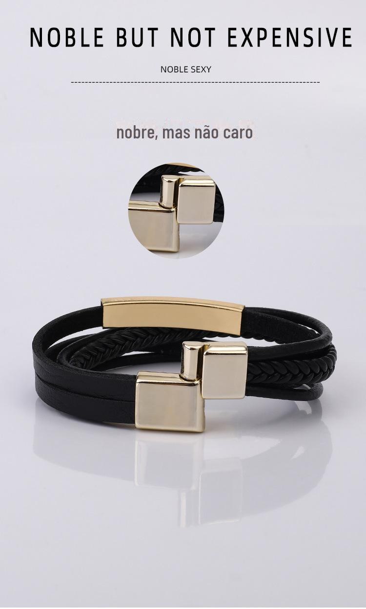 SYSL005 Fonte de fornecimento de fábrica pulseira de couro de liga de couro europeu e americano pulseira de liga de fivela magnética pulseira de couro moda acessórios de mão de couro
