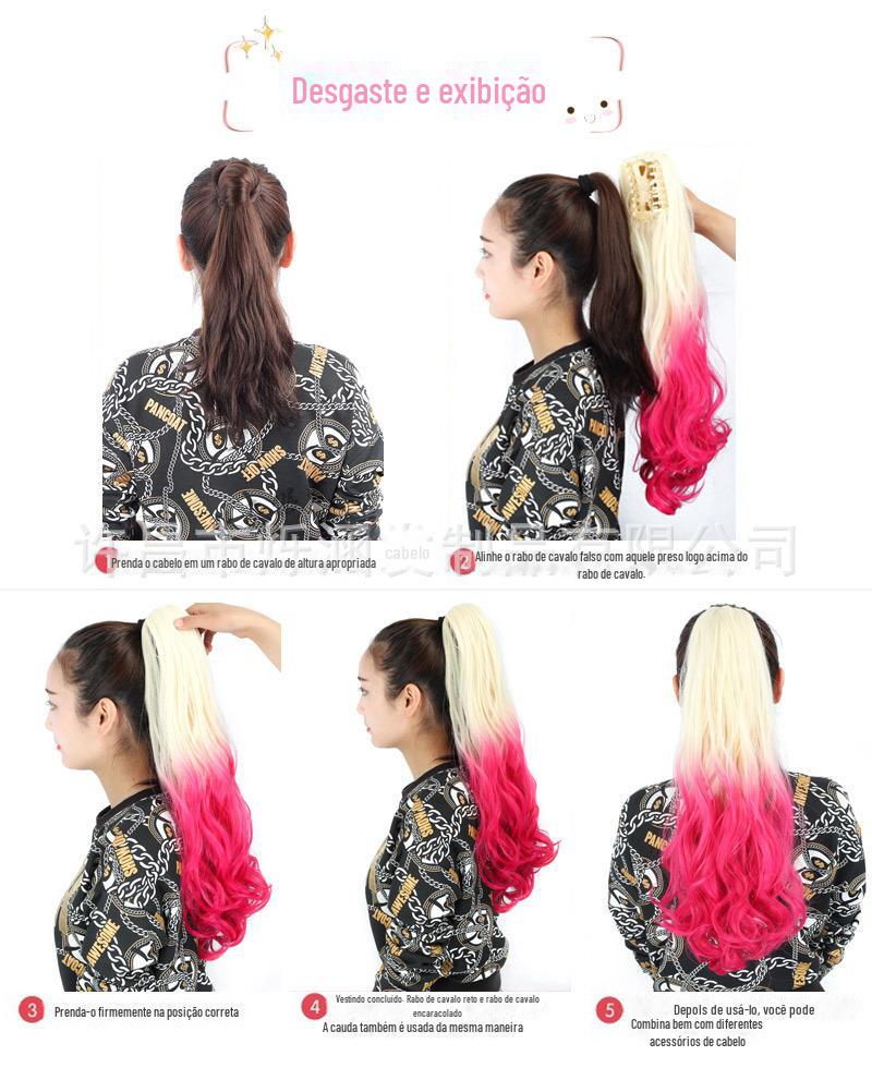 Europeu e americano velcro encaracolado rabo de cavalo peruca feminina rabo de cavalo envoltório invisível sem costura extensão do cabelo rabo de cavalo