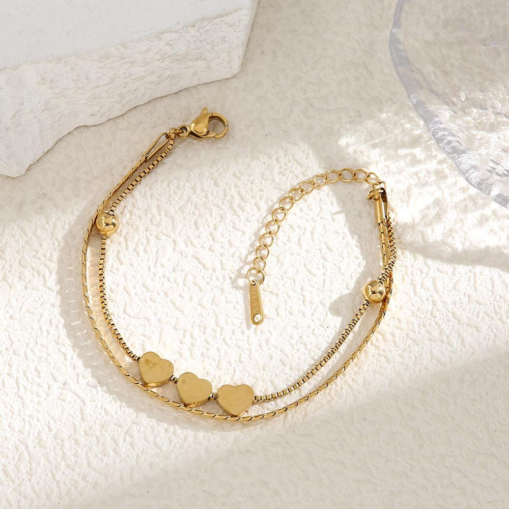 Pulseira de aço titânio de alta qualidade coração amor luxo leve dourado design de nicho ins enrolamento em camada dupla joias Net Red feminina hipster