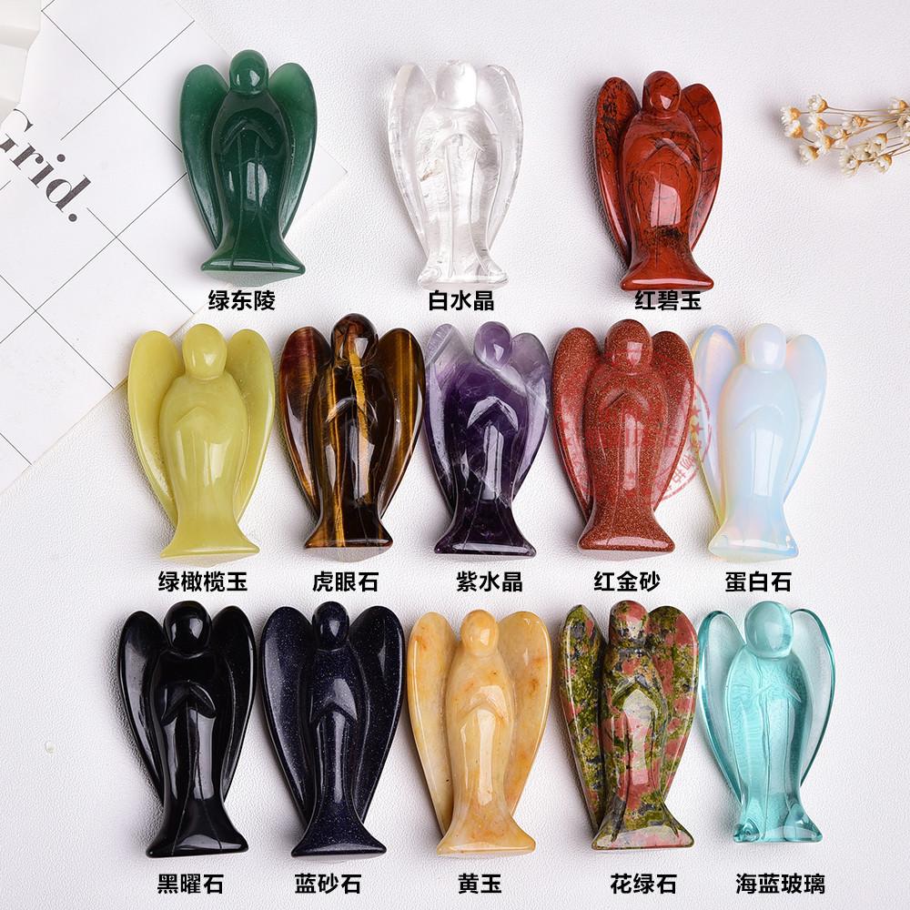 Ornamentos Esculturas de Anjos de Cristal Natural Jade Quartzo Artesanato de Pedra Semipreciosa Mobiliário para Casa Joias Transfronteiriças