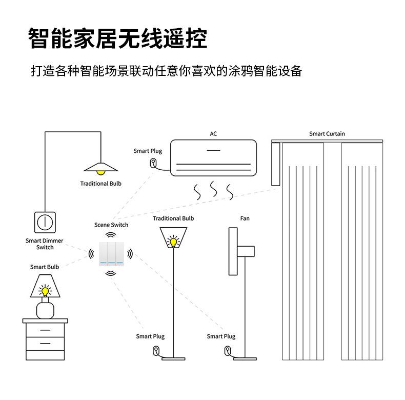 Interruptor inteligente zigbee graffiti fiação livre adesivos aleatórios controle remoto casa inteligente cenário interruptor de parede
