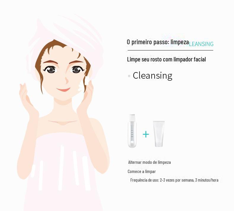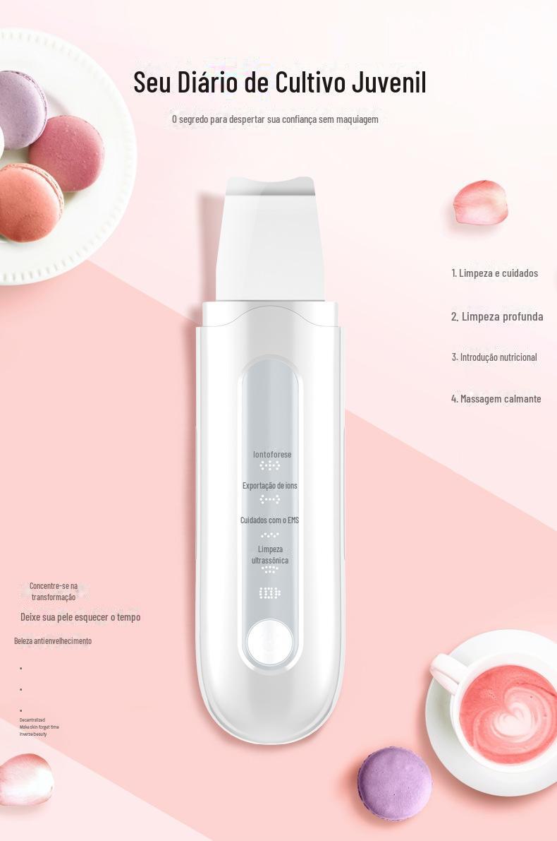 1. Use vibração ultrassônica de alta frequência para penetrar profundamente na pele e remover a sujeira; limpa a pele de forma mais eficaz, melhora a microcirculação e promove o metabolismo; introduz nutrientes para alcançar uma melhor absorção de loções e séruns, acalma facilmente a pele e restaura a saúde da pele;