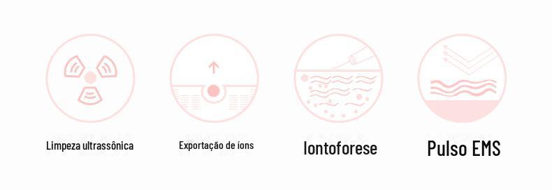 Modo de trabalho: limpeza, cuidado EMS, exportação de íons, introdução de íons