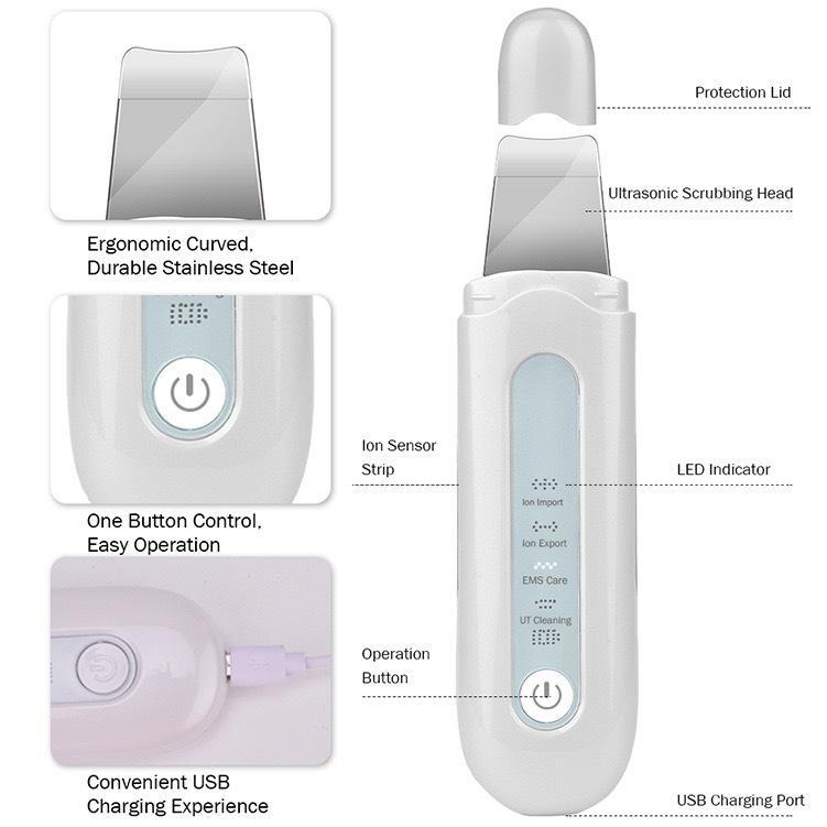 2. Fornece quatro modos de trabalho diferentes: limpeza UT, cuidado EMS, exportação de íons e introdução de íons, atendendo totalmente às suas necessidades diárias multifuncionais de cuidados com a pele e soluções práticas para seus problemas faciais, como remoção de acne, eliminação de cravos, redução de poros, redução de rugas e firmeza da pele;