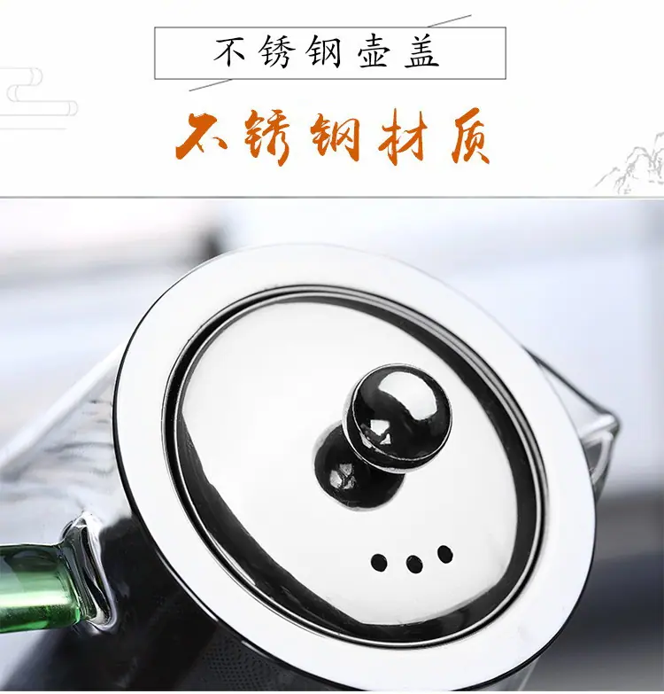 Bule de vidro resistente ao calor transfronteiriço, bule de chá de alto teor de borosilicato, revestimento transparente de aço inoxidável, bule de cor resistente a altas temperaturas