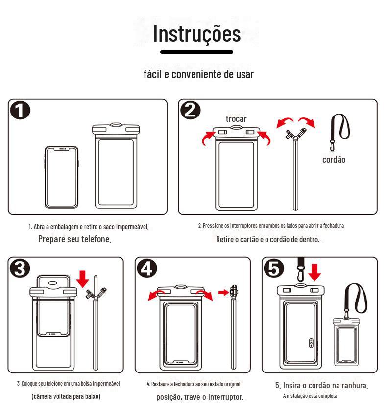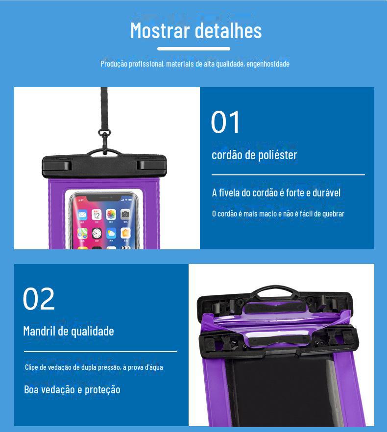Bolsa Impermeável para Celular com Tela Sensível ao Toque, Bolsa para Celular para Natação e Mergulho, Selo com Bolsa de Ar, Capa para Celular Portátil para Rafting em Águas Termais ao Ar Livre
