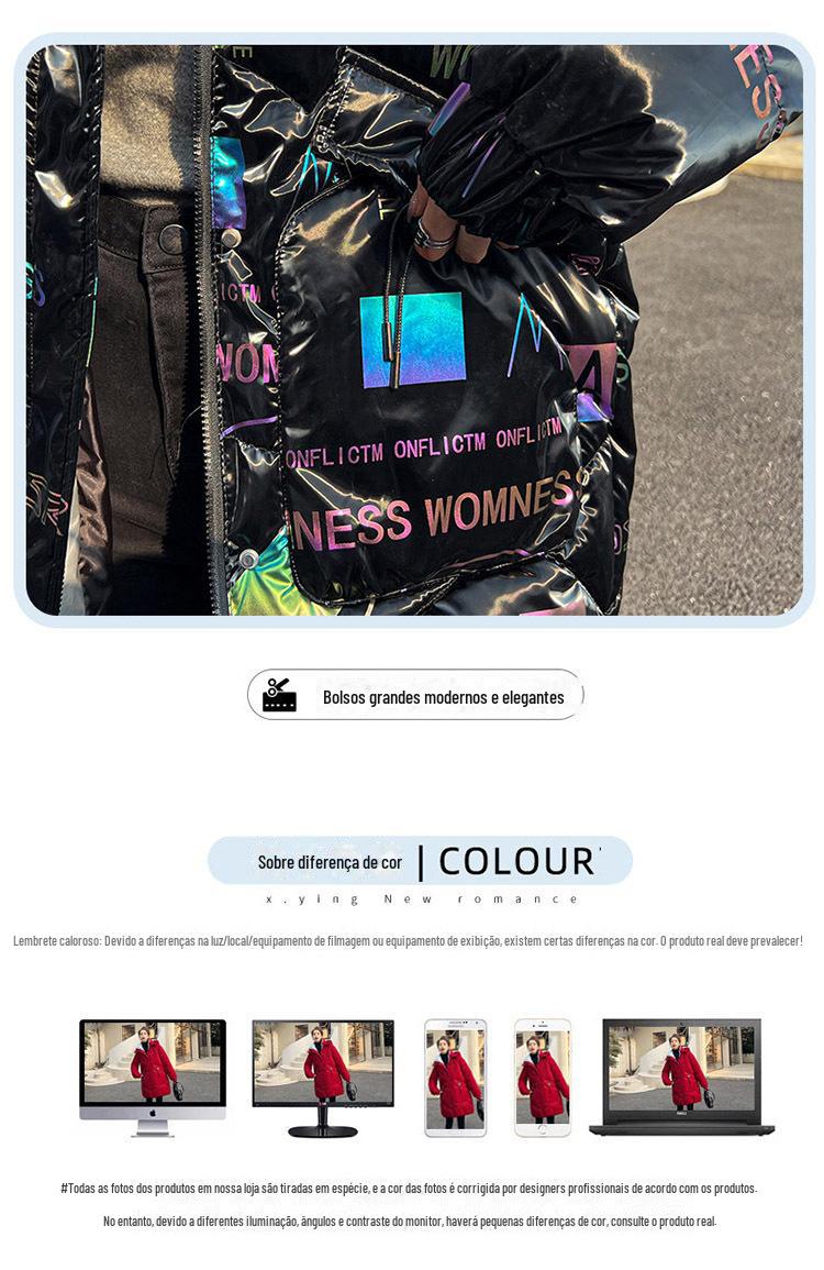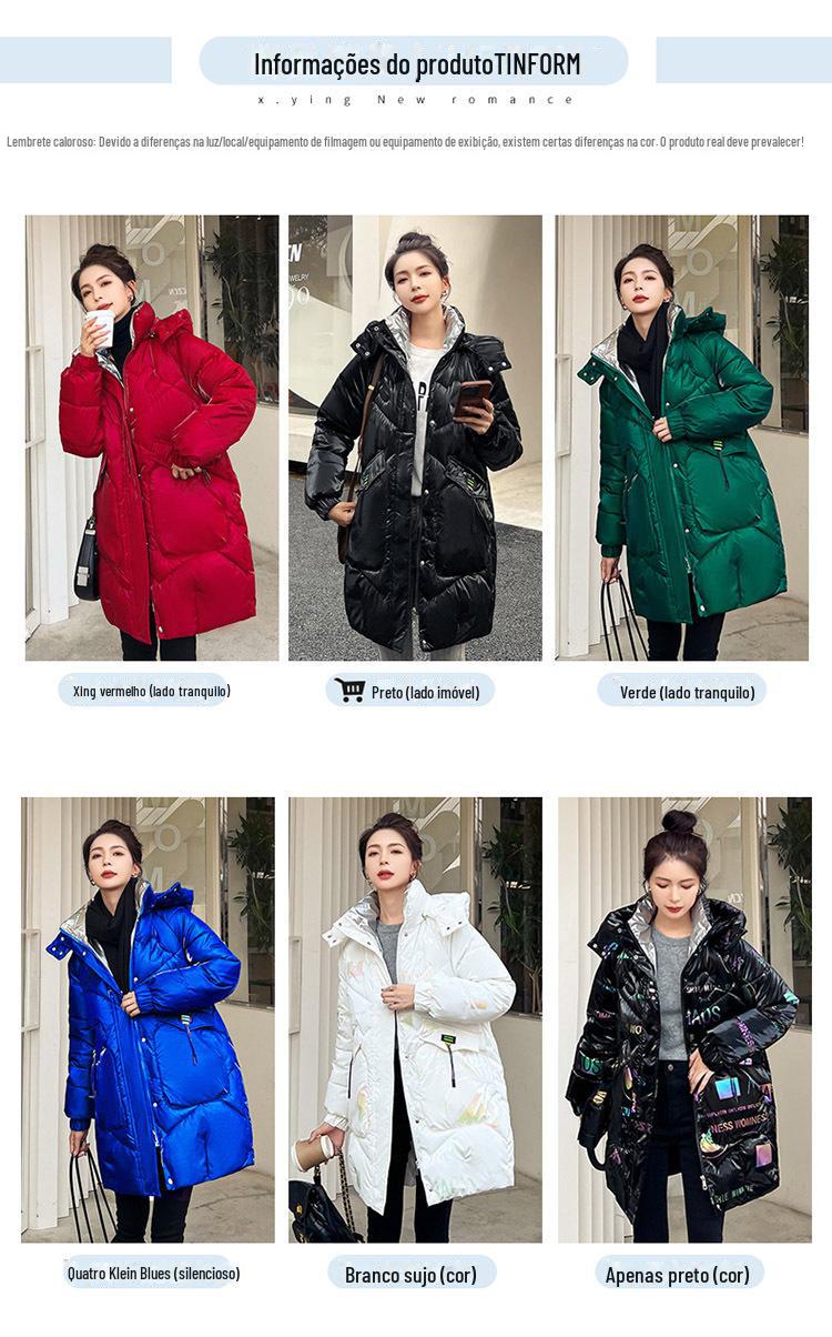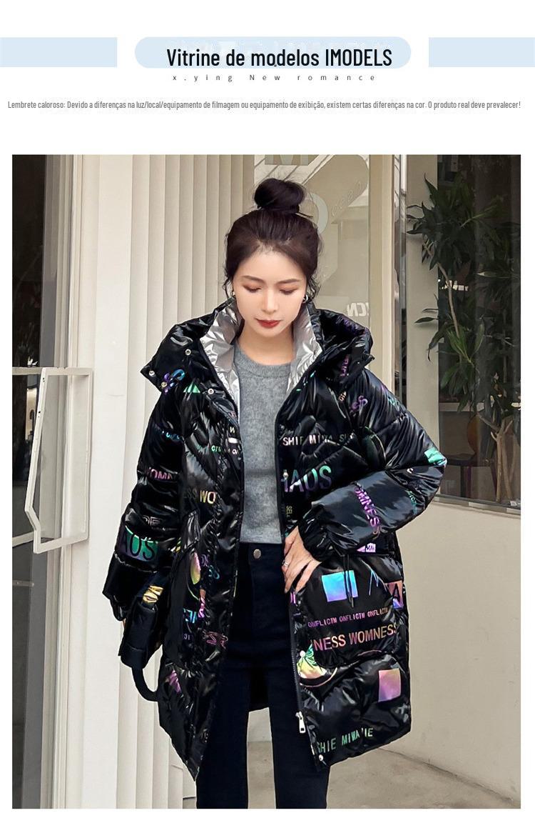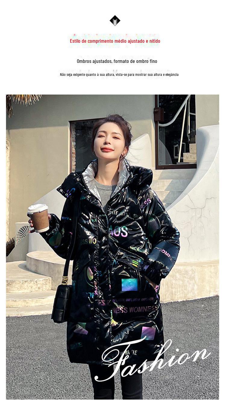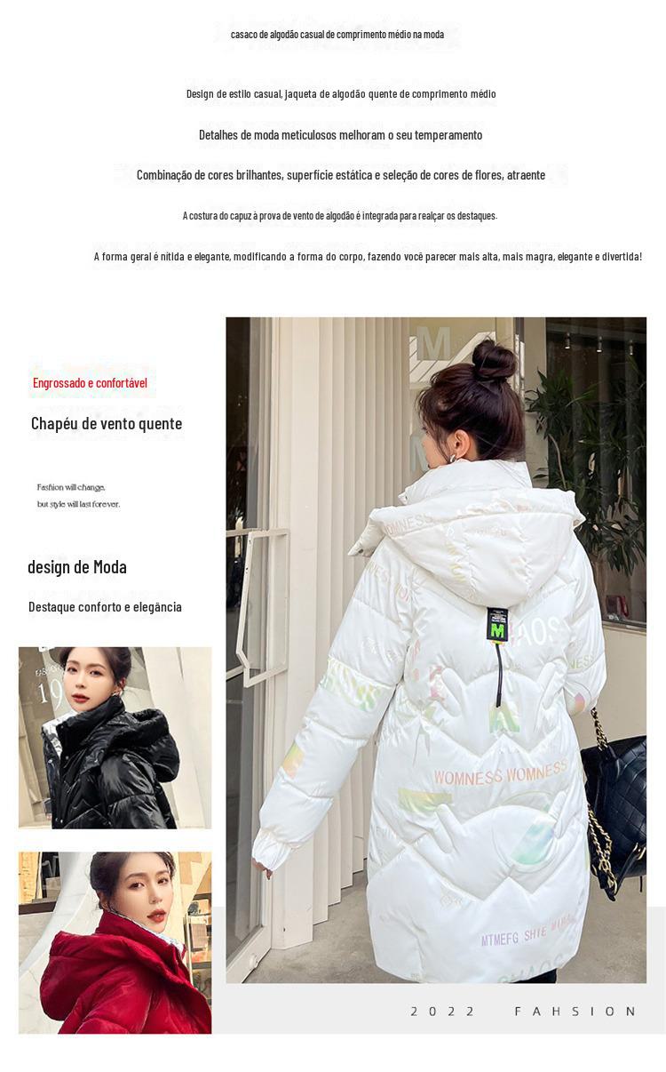 Novo Mid-Length Inverno Carta Cor Down Algodão Roupas Mulheres Wash-Free Gloss Estilo coreano Casaco Engrossado Comércio Exterior Comércio Exterior