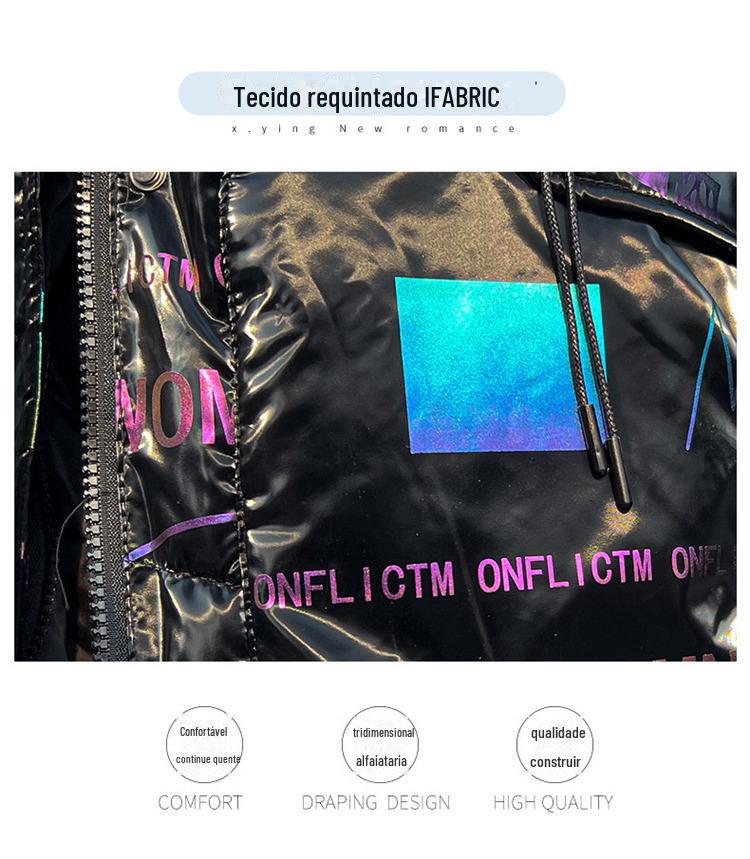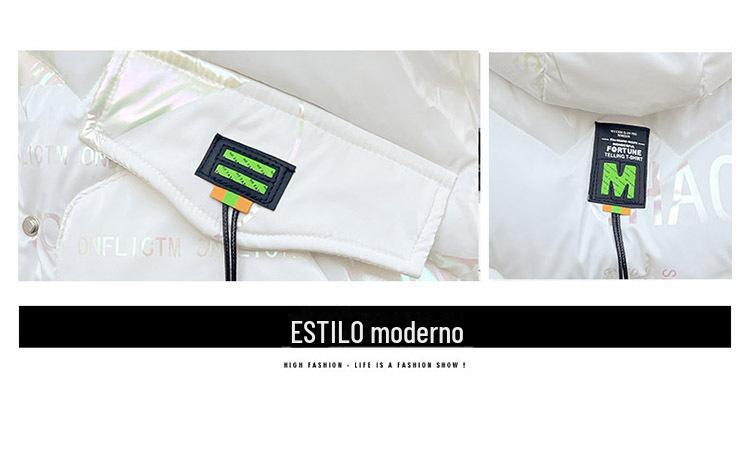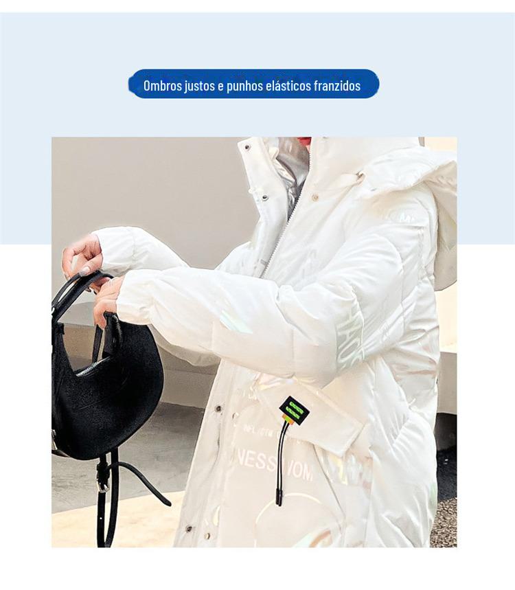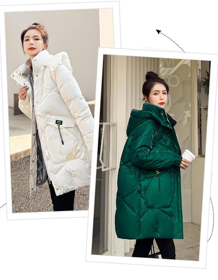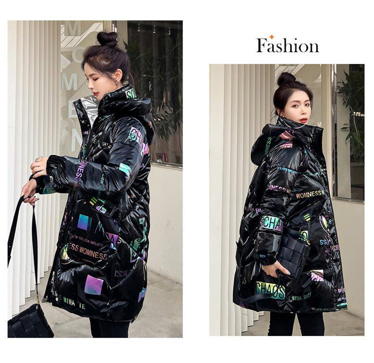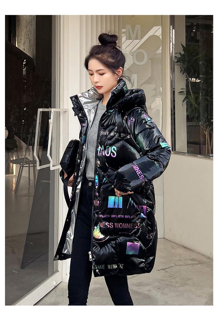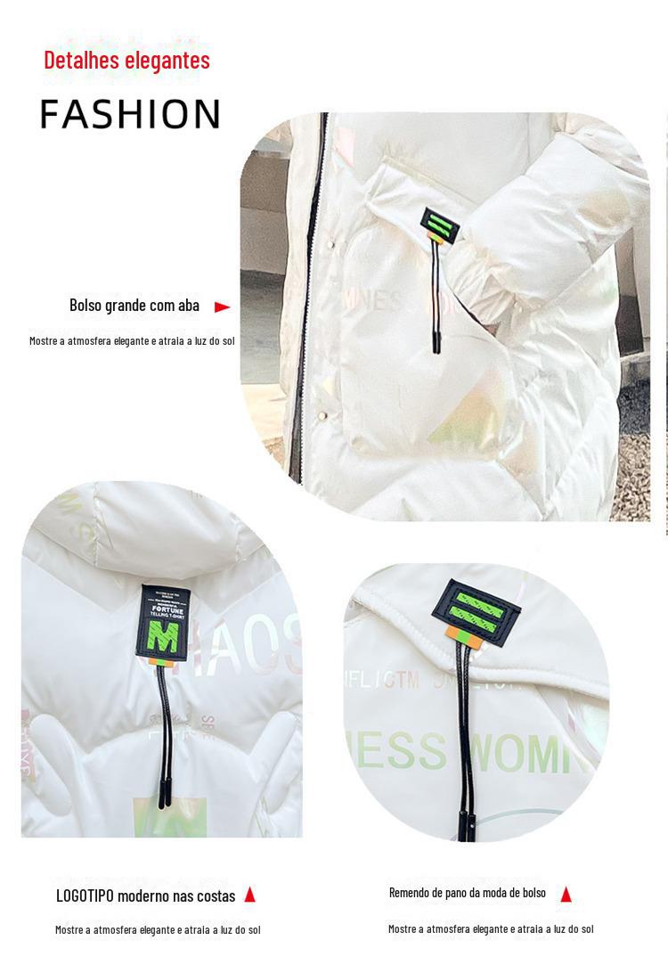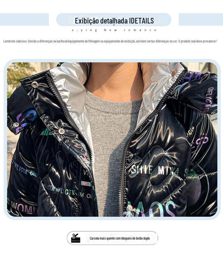 Novo Mid-Length Inverno Carta Cor Down Algodão Roupas Mulheres Wash-Free Gloss Estilo coreano Casaco Engrossado Comércio Exterior Comércio Exterior