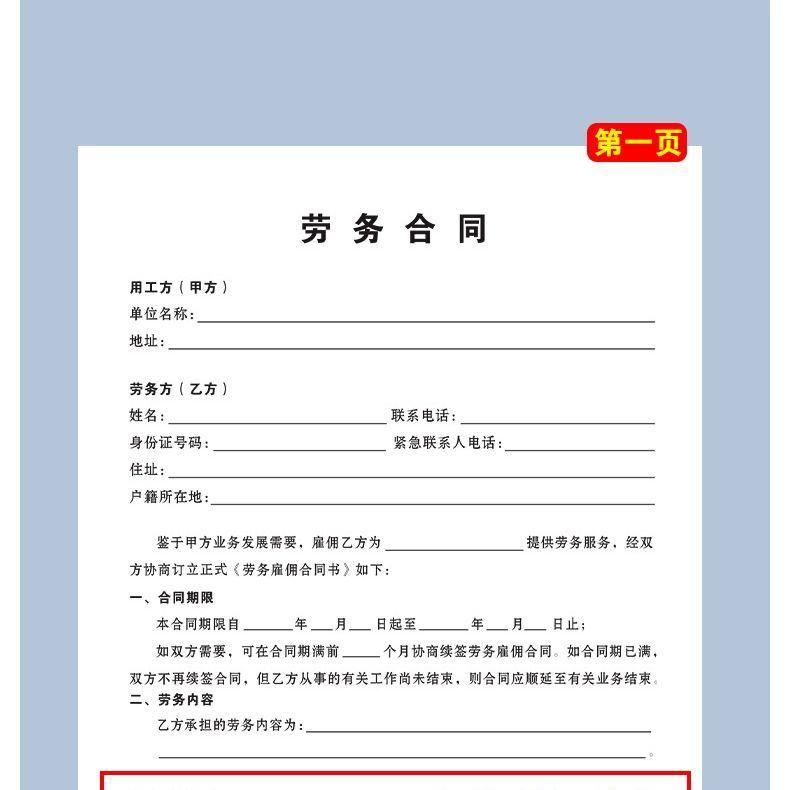 Contrato de Trabalho, Contrato de Emprego de Funcionário da Empresa, Contrato de Emprego de Trabalhador Temporário de Canteiro de Obras, Acordo de Cooperação de Terceirização de Mão de Obra