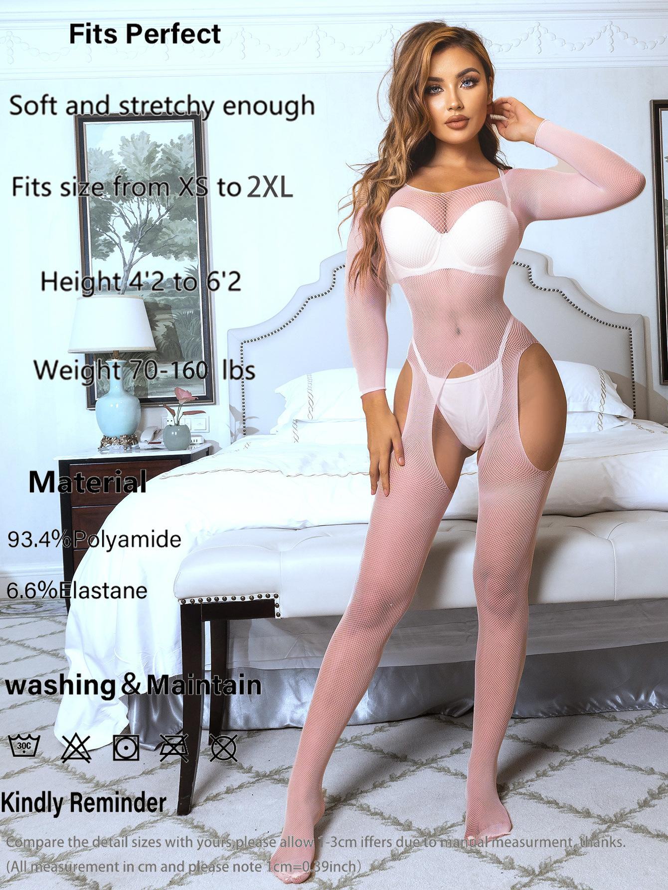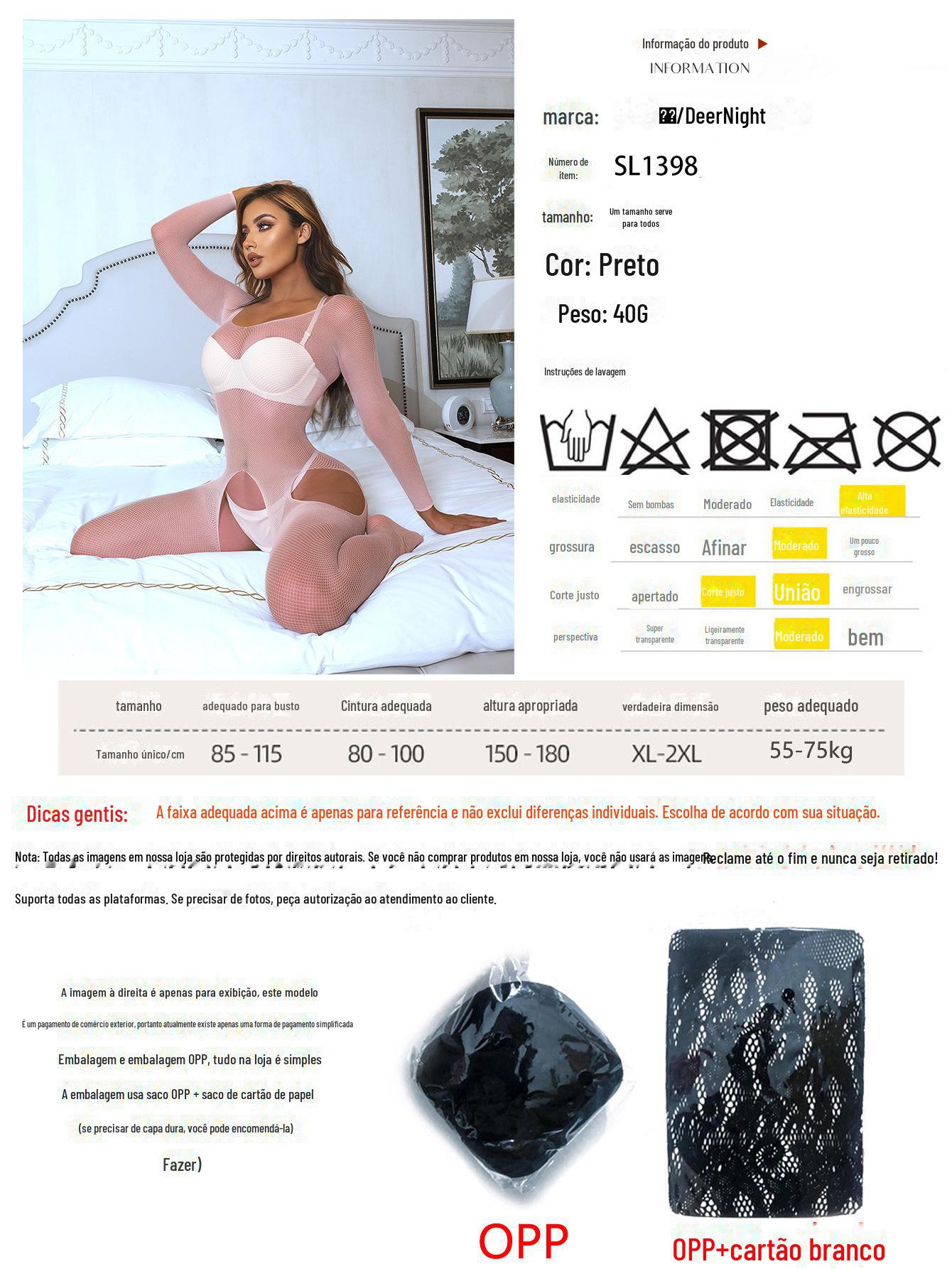 Europeu e Americano Oco Aberto Pendurado Malha Fina Transparente Tentação Oco Rosa Lingerie Mulheres Sexy Slim-Fit One-Piece Roupas