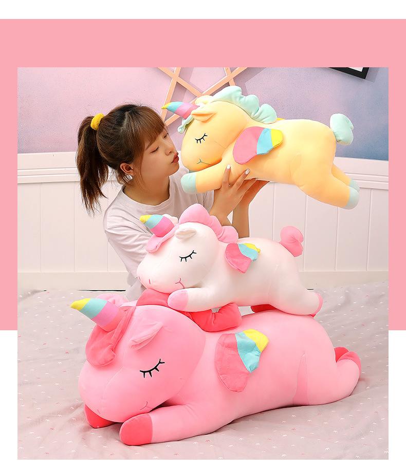 Boneca transfronteiriça atacado bonito unicórnio boneca arco-íris cavalo de pelúcia brinquedo menina presente de aniversário clipe perna boneca