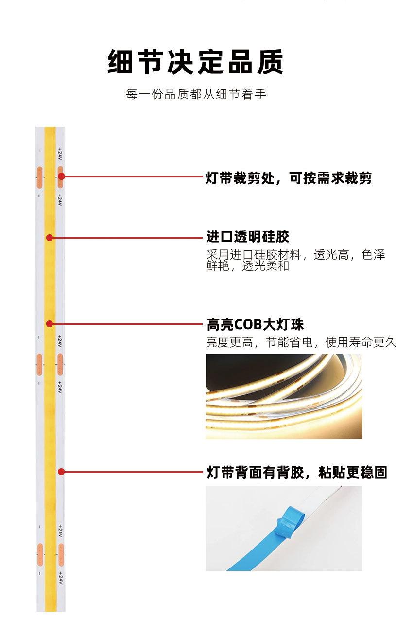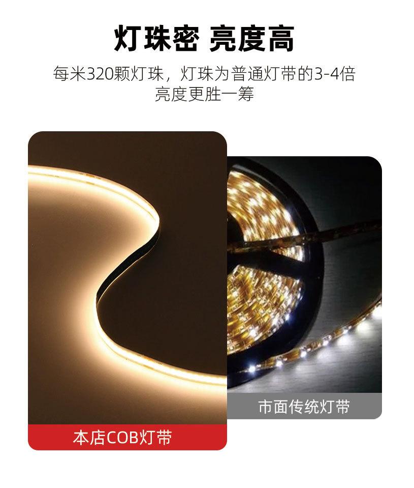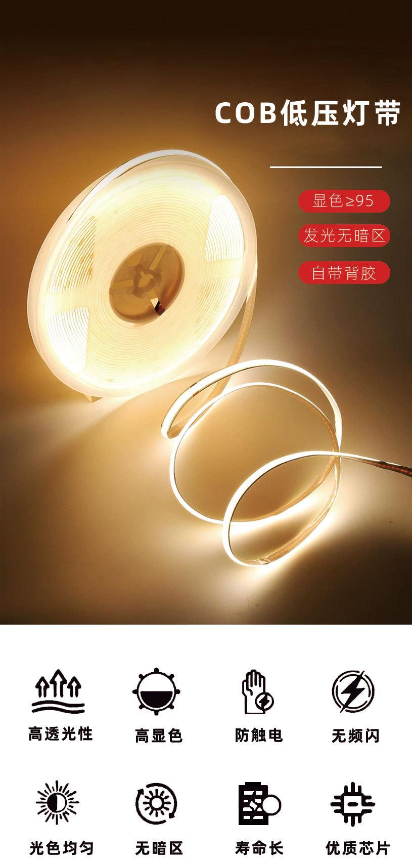 Fita de Luz Cob Autoadesiva Led Casa Sala de Estar Teto Armário Atmosfera Baixa Tensão 24V Luz Linear Fita de Luz Flexível Suave