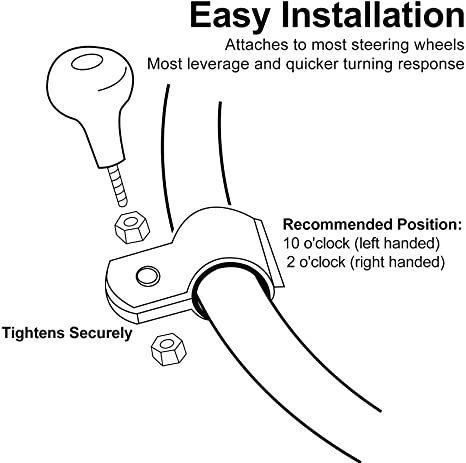 A baioneta do volante abaixo do produto é feita de liga e a plataforma giratória acima é galvanizada em ABS. Há um anel de borracha na parte interna da baioneta circular, para não arranhar o volante. Acabamento requintado e aparência bonita. Instruções de uso: Desaparafuse o parafuso na extremidade inferior da baioneta, depois encaixe as partes superior e inferior da baioneta no volante e aperte os parafusos. O volante é tão pesado, mesmo com power assist, quando você tem que girar o volante com uma mão para atender uma ligação, a power ball é de grande utilidade. Com a ajuda de princípios físicos, a força ficará mais concentrada em uma posição do que em todo o volante, facilitando o controle do volante. Acabamento requintado, textura metálica!