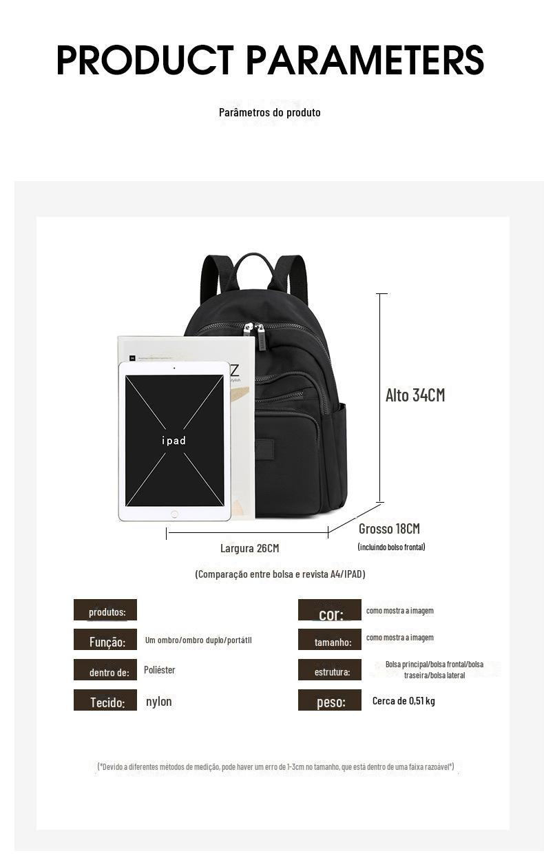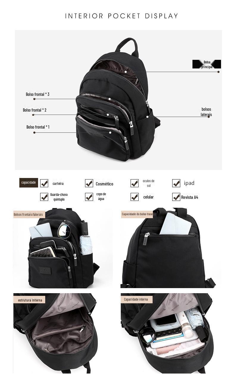 Mochila Feminina Nova Mochila de Nylon Grande Capacidade Leve Casual Versátil Bolsa de Viagem de Lona Multicamadas Mochila Escolar
