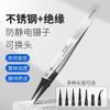 Pinças Pretas ESD Manual Aço Inoxidável Ponta Fina Precisão Eletrônica Resistente ao Desgaste Ponta Redonda Micro Antiestática Grau Industrial