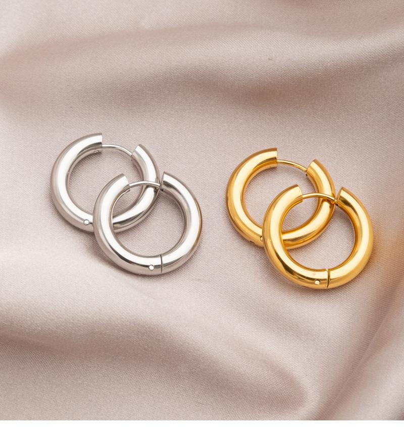 Golden circle plain circle thick ear buckle, Silver ring plain ring thick ear buckle