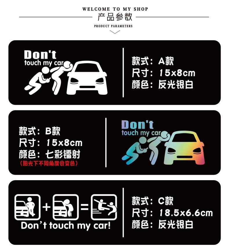 Adesivos decorativos para carros, adesivos para carroceria de vidro, texto criativo, não toque no meu carro, adesivos refletivos personalizados, adesivos de desenho animado, modificados