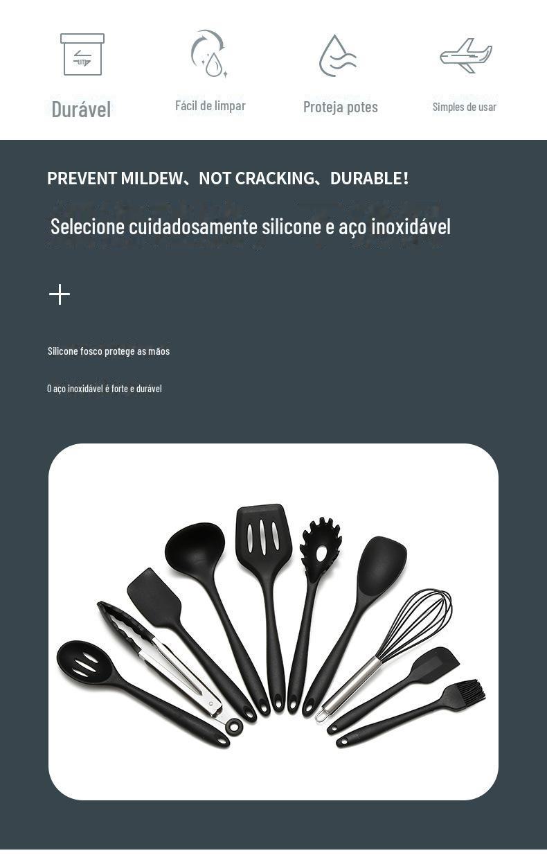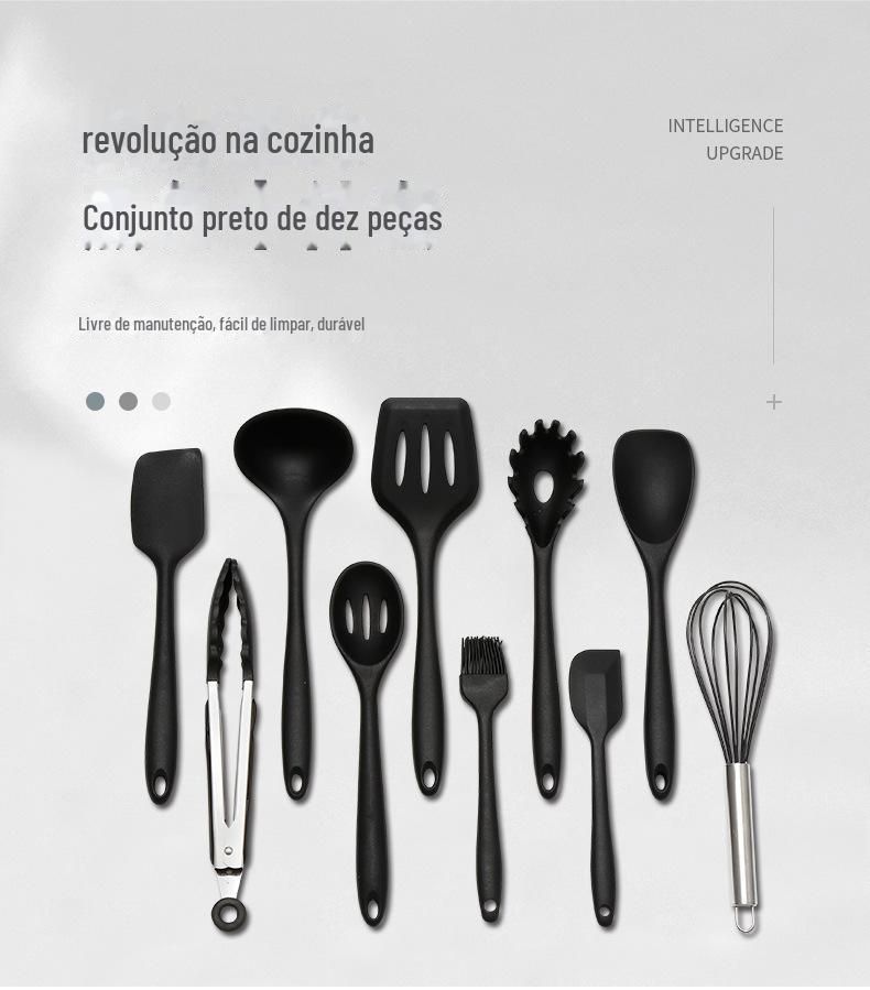 Caixa Colorida Amazon Atacado Utensílios de Cozinha de Silicone 10 Peças Conjunto de Panelas Antiaderentes Ferramentas de Cozinha Utensílios para Cozinhar Assar