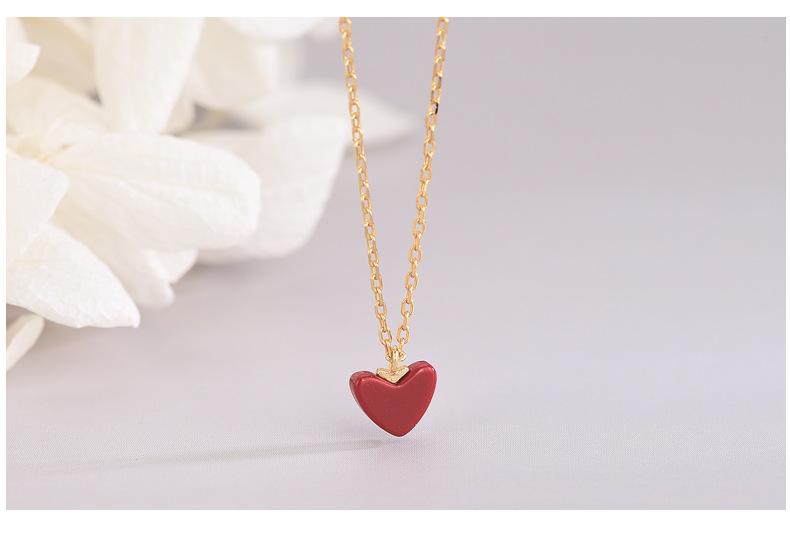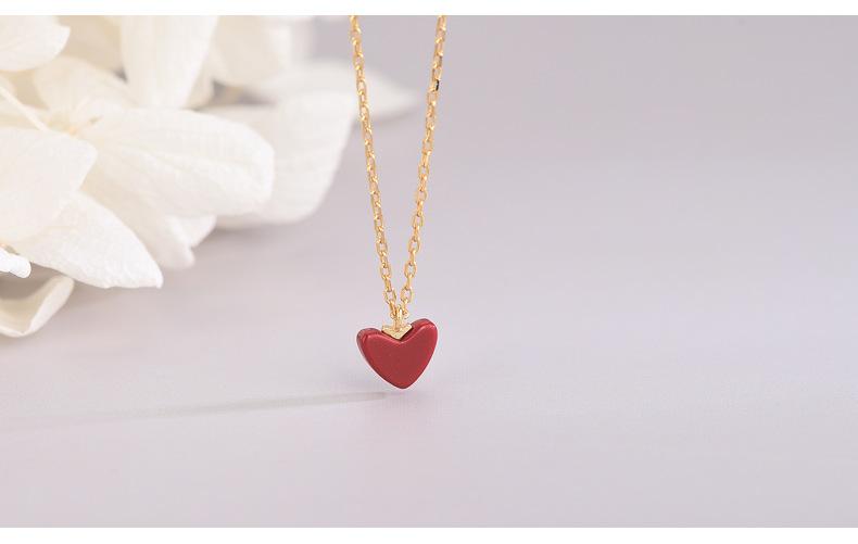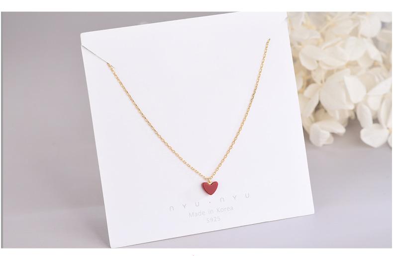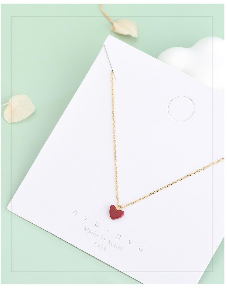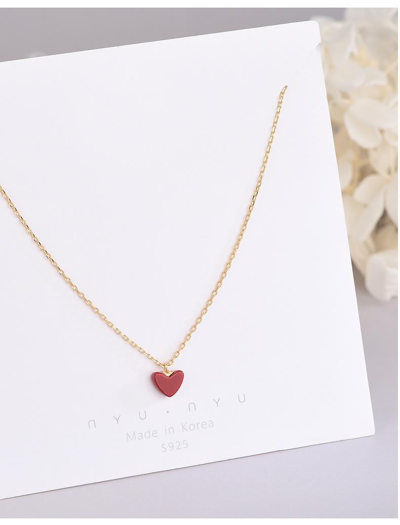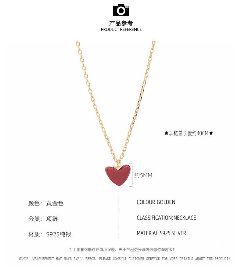 Colar de prata esterlina S925, temperamento japonês e coreano, pequeno coração vermelho, nicho, design, simples, amor, corrente de clavícula, mulheres, uma geração de cabelo