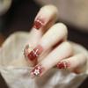 Cabeça redonda curta vermelho rosa francês fada usar manicure unhas destacáveis unhas produto acabado branco atacado