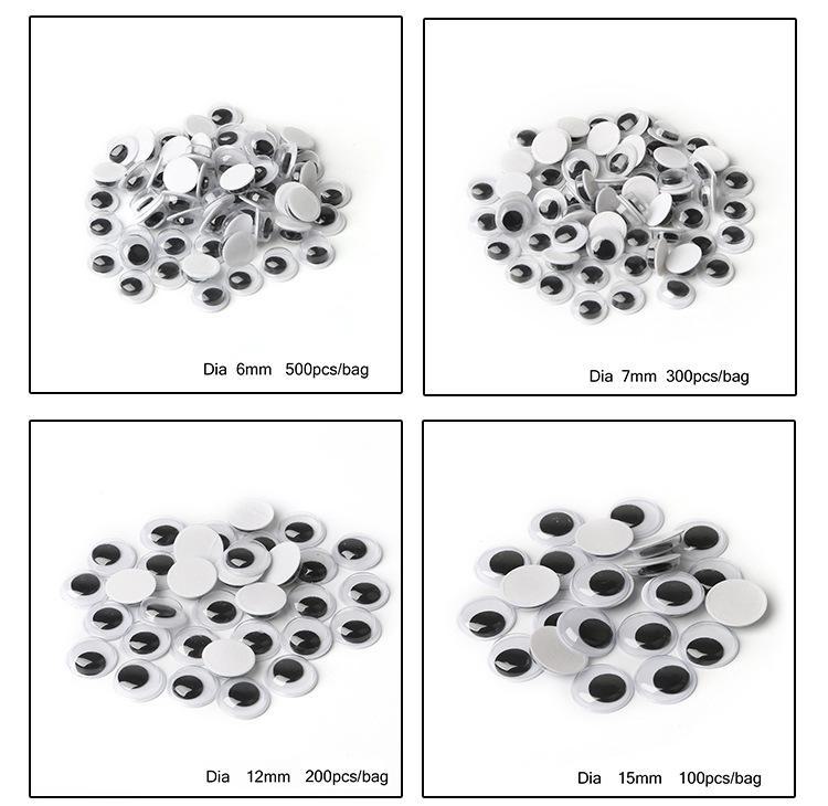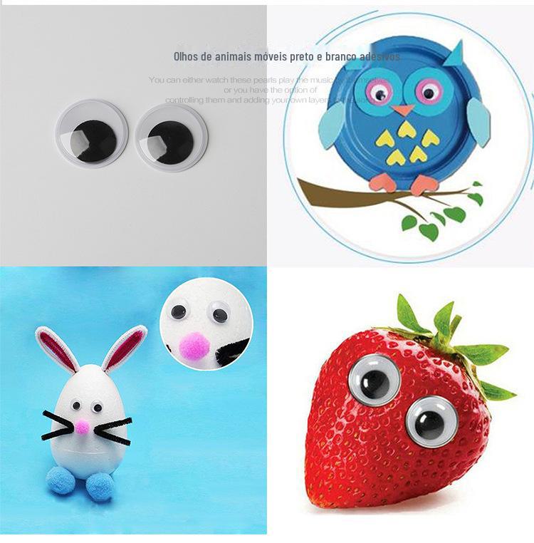 Materiais artesanais para crianças, acessórios para olhos de animais, olhos de brinquedo diy com adesivo, olhos móveis, olhos pretos e brancos para bebês