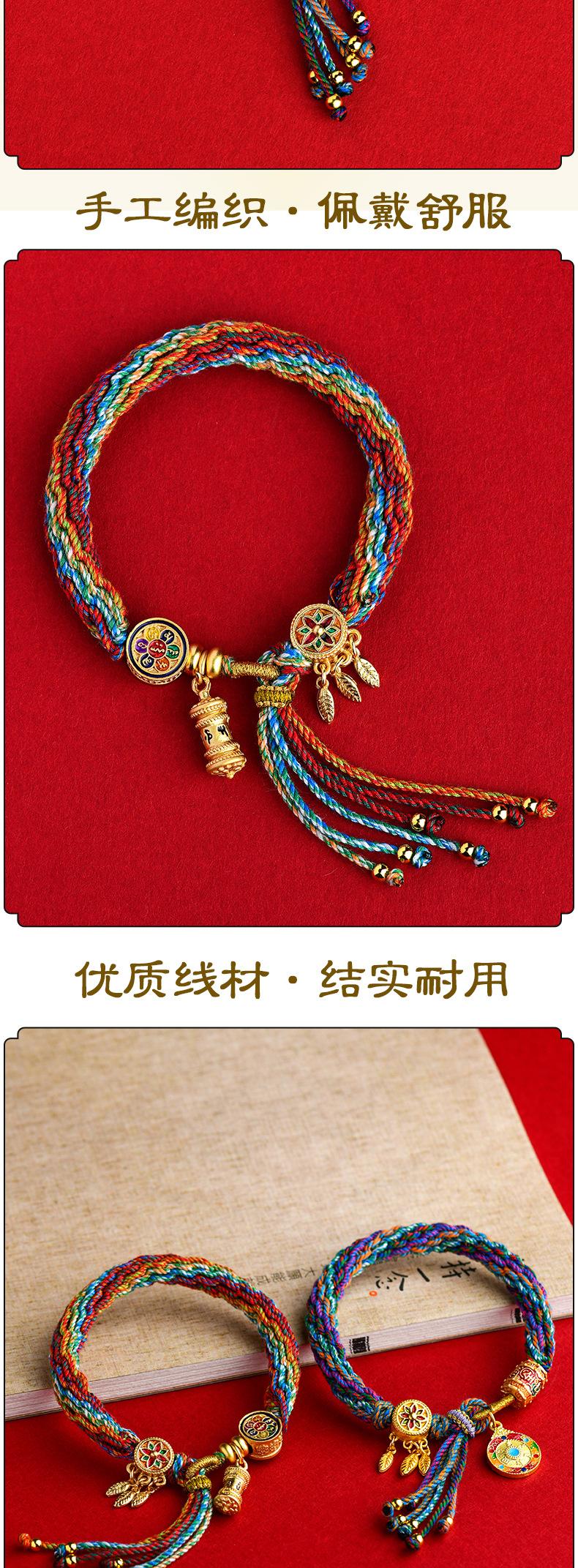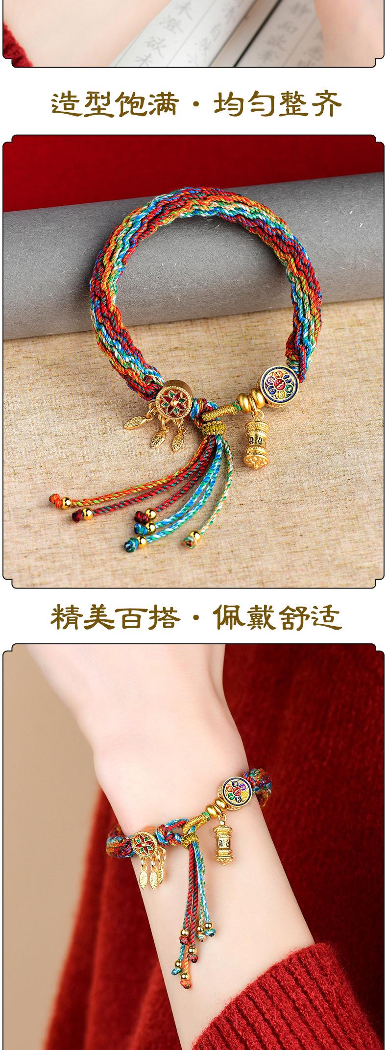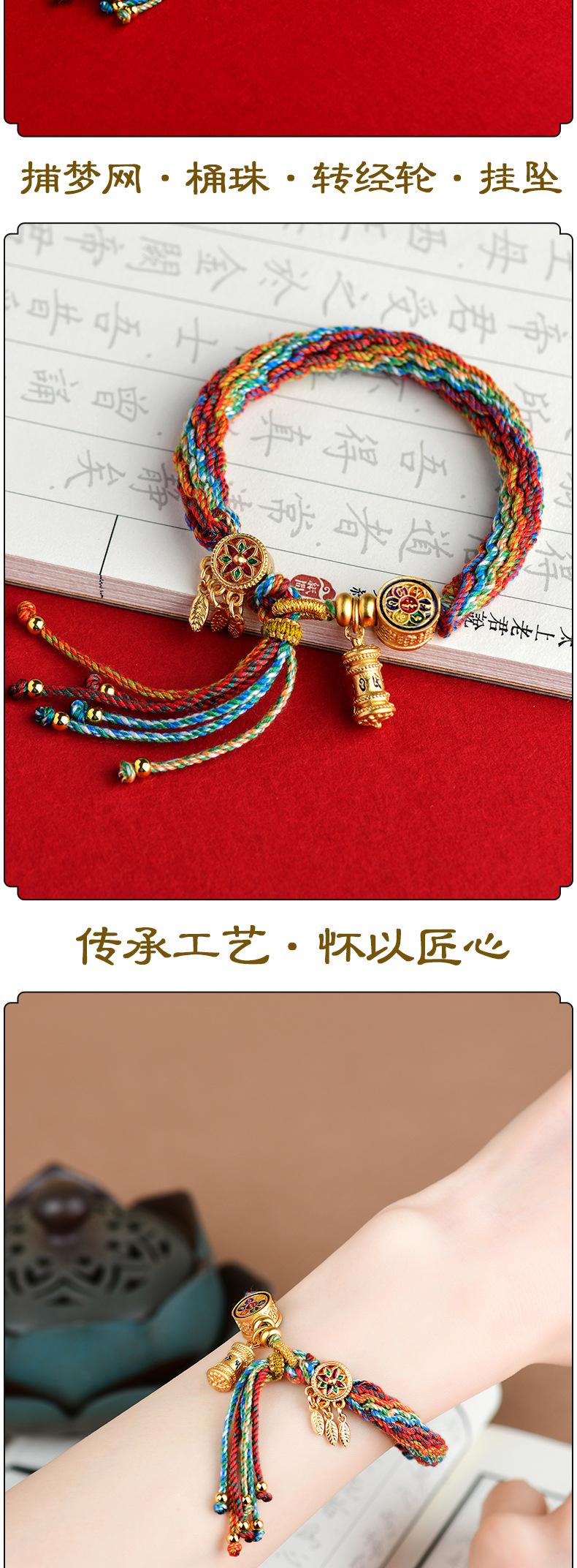 Cordão de mão budista de estilo étnico para rosto e mão, tecido à mão com fio de algodão puro, cordão de mão Xizang com rede de apanhador de sonhos, mantra de seis sílabas
