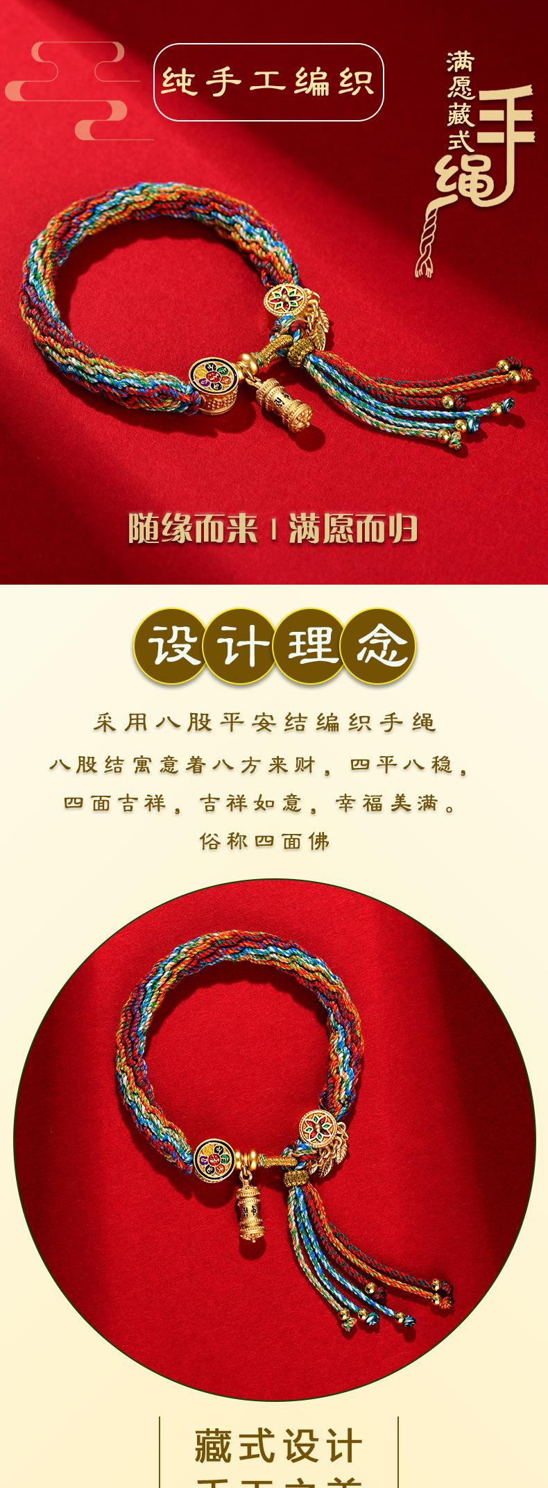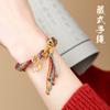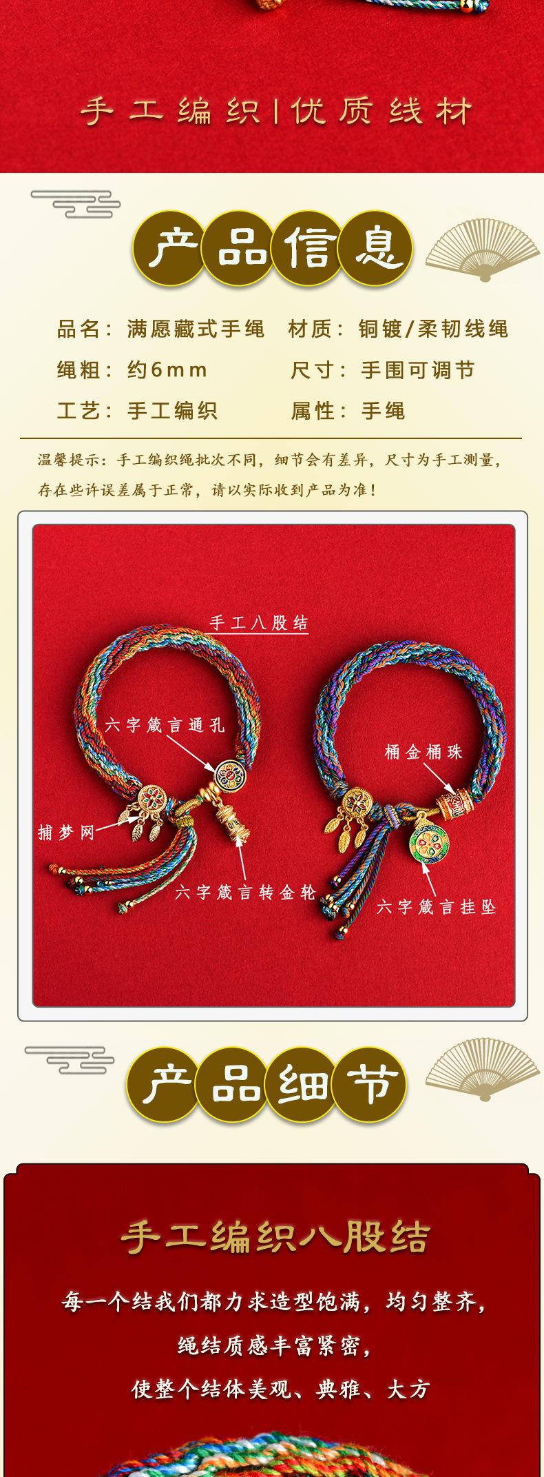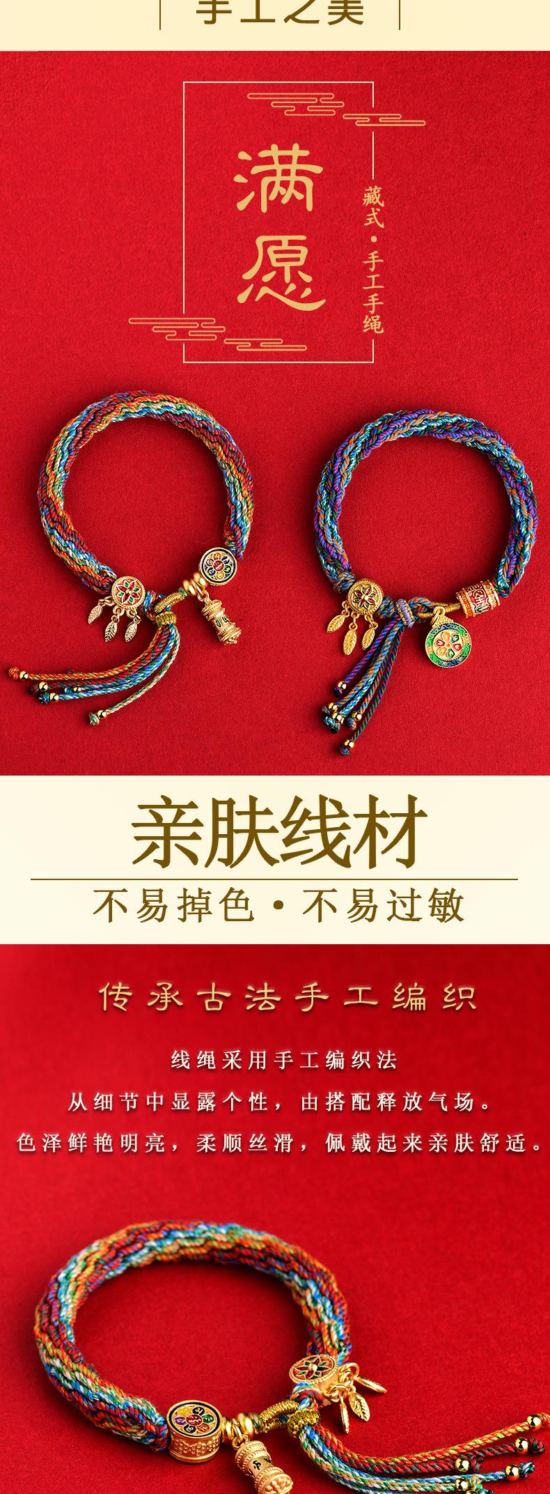 Cordão de mão budista de estilo étnico para rosto e mão, tecido à mão com fio de algodão puro, cordão de mão Xizang com rede de apanhador de sonhos, mantra de seis sílabas