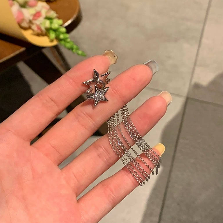 Elegante estrela longa Tassel brincos nicho design leve brincos de luxo brincos de sentido avançado brincos das mulheres sem furos de orelha