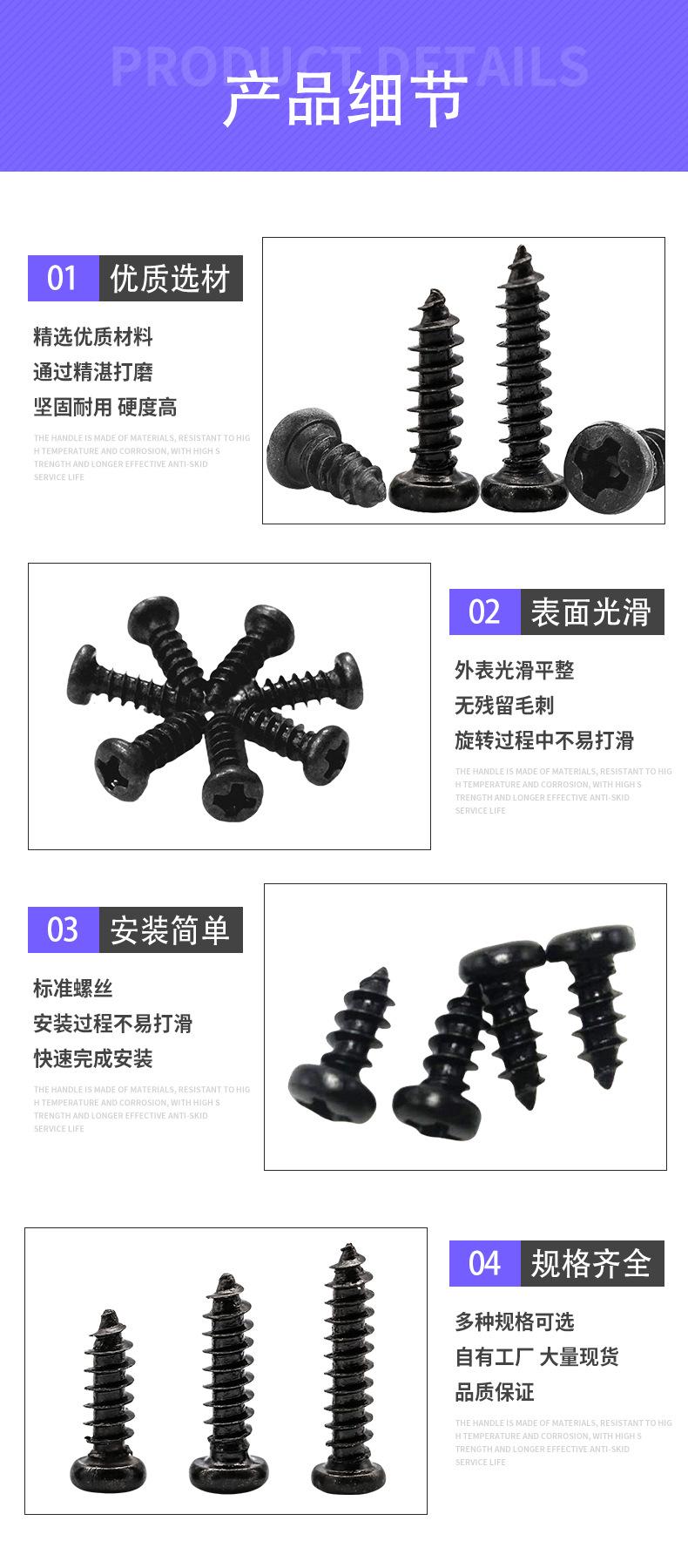 Parafuso auto-roscante de cabeça redonda PA preto cruz cabeça redonda ponta auto-roscante parafuso M3.5M4M5 cabeça panela parafuso eletrônico elemento rosqueamento