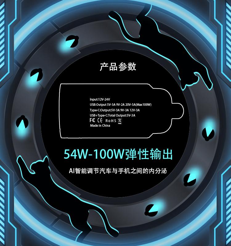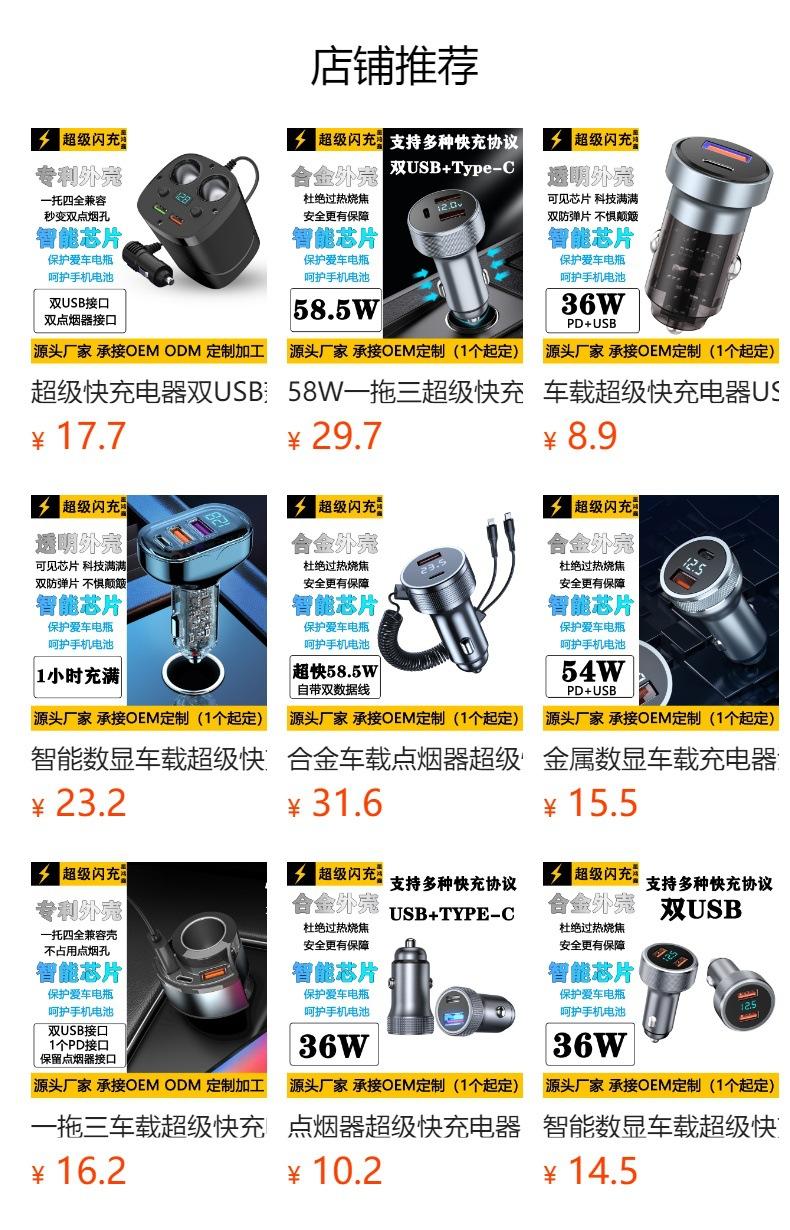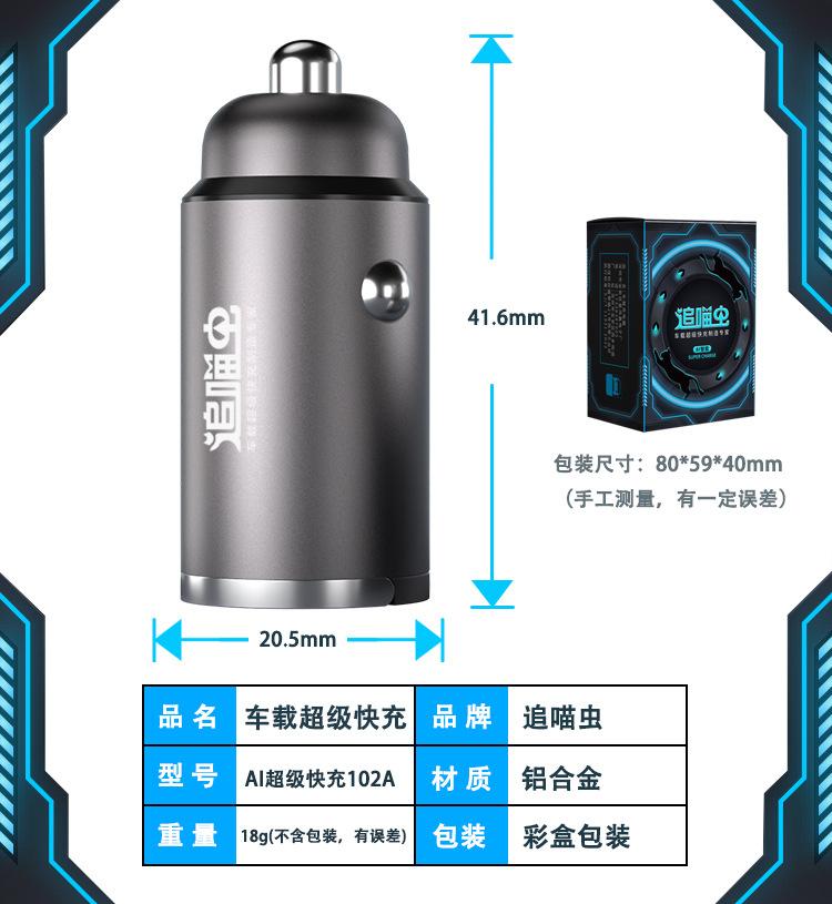 Carregador de carro acendedor de cigarro oculto com anel de puxar inteligente com IA plugue de carregamento super rápido para carro