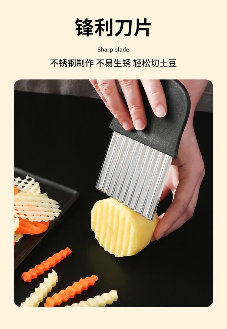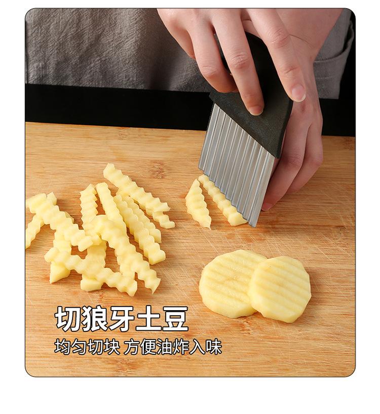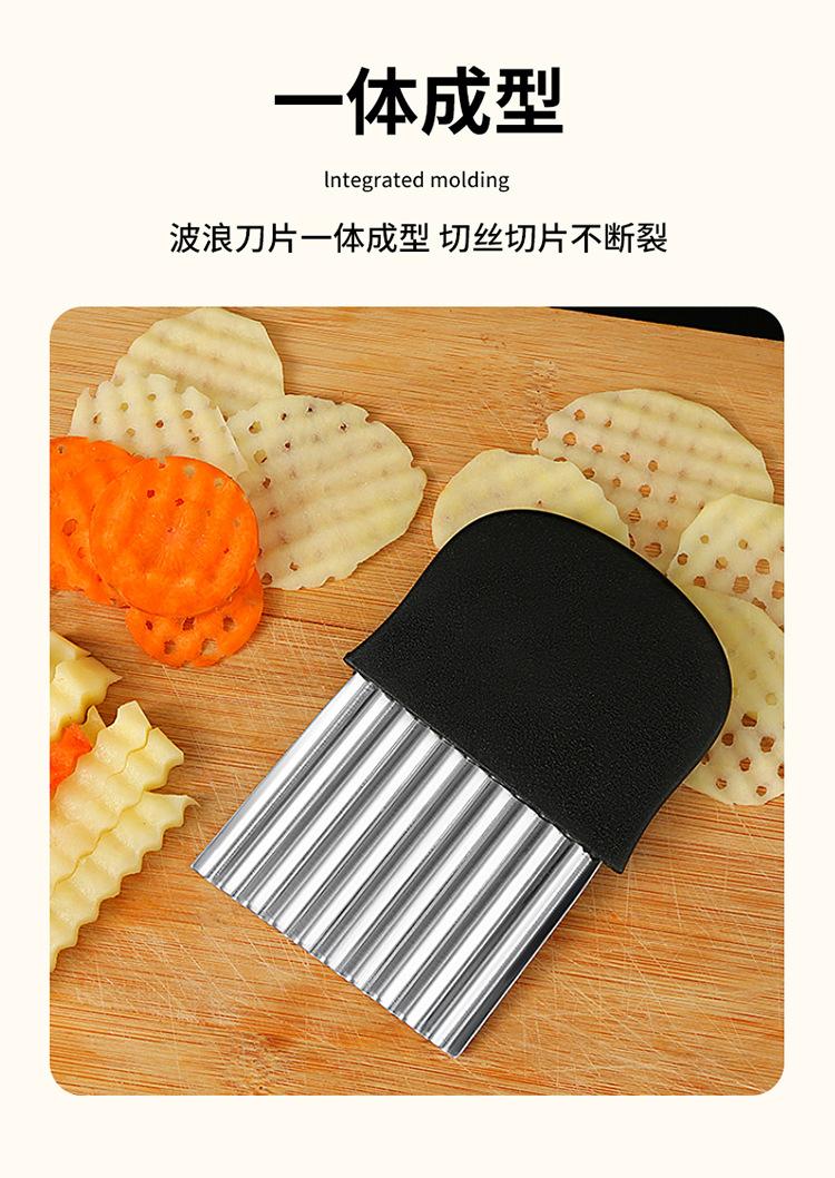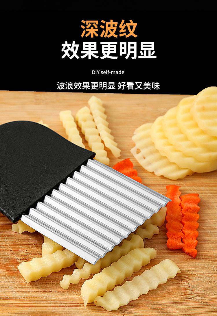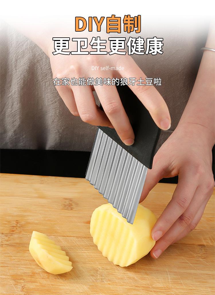 Faca ondulada de aço inoxidável, faca de batata com ponta, faca de corte de batata, faca de onda, artefato de corte de vegetais domésticos, cortador de tiras extravagantes
