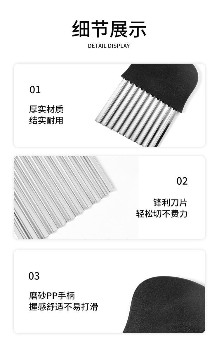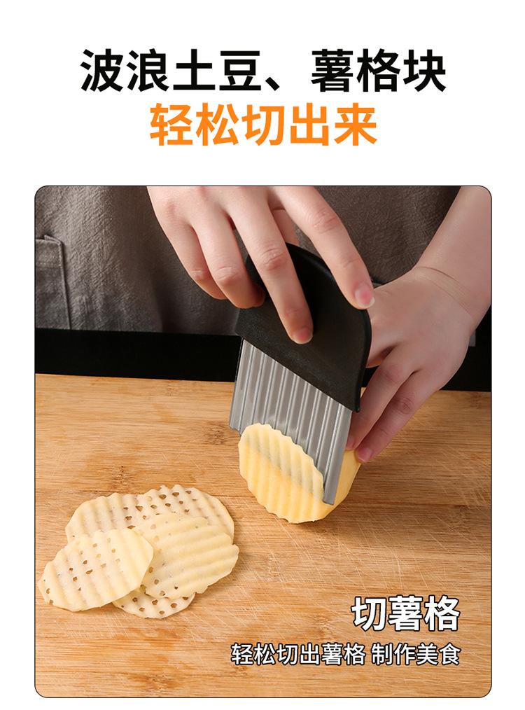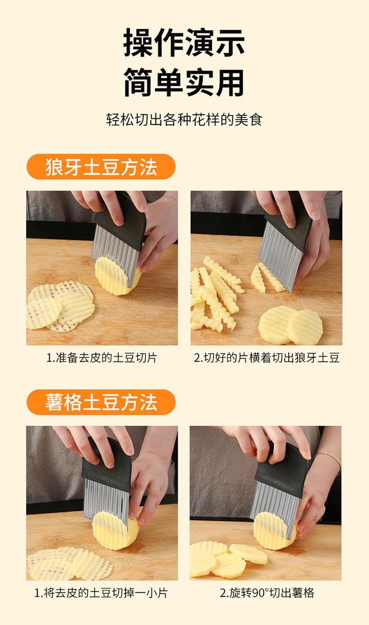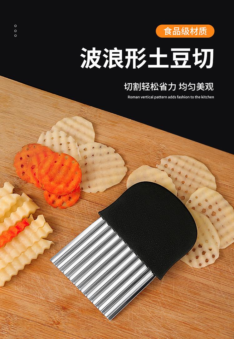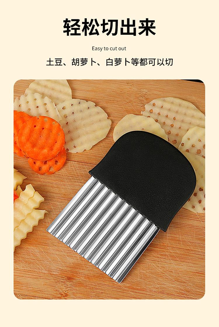 Faca ondulada de aço inoxidável, faca de batata com ponta, faca de corte de batata, faca de onda, artefato de corte de vegetais domésticos, cortador de tiras extravagantes