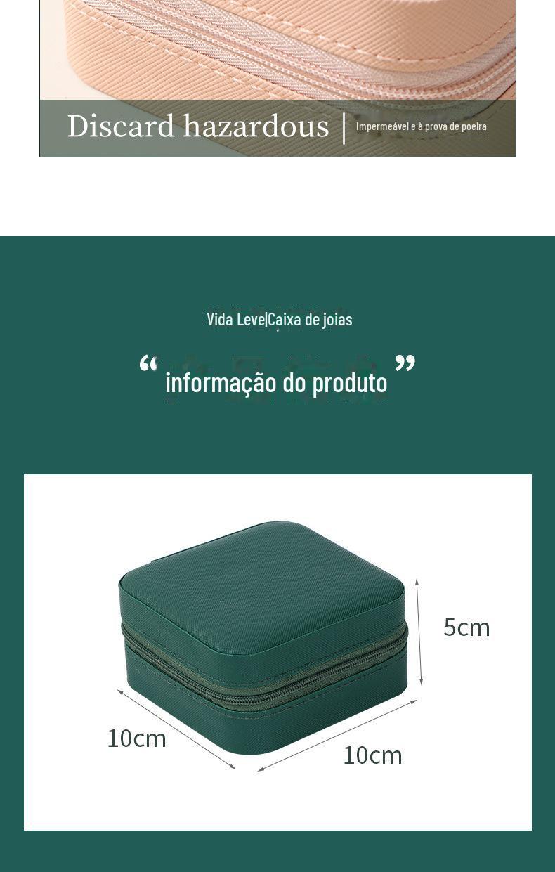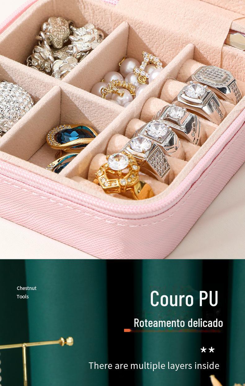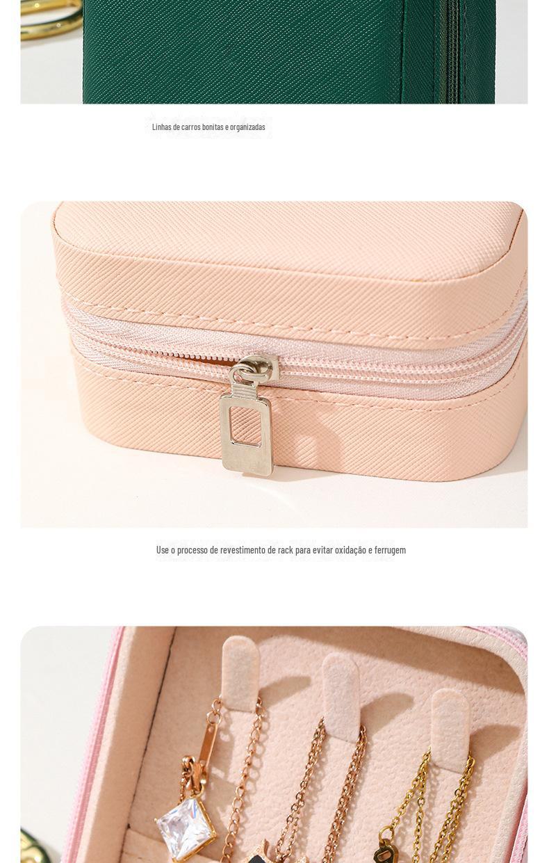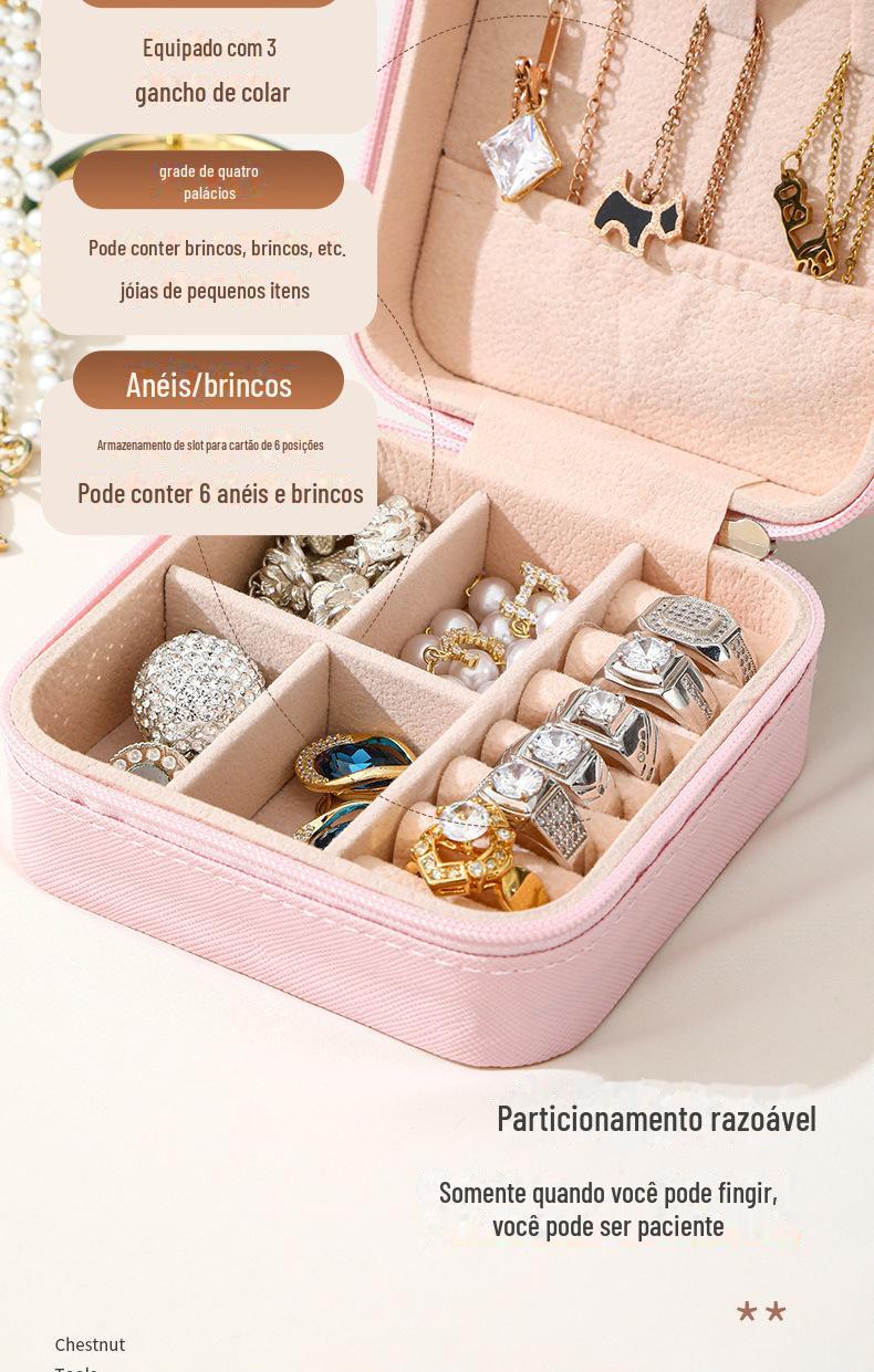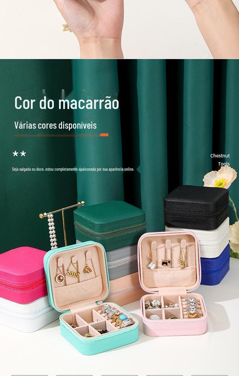 Caixa de joias com zíper portátil, caixa de anéis, colar, brincos, caixa de armazenamento de brincos, macaron, joias, primeira caixa de joias