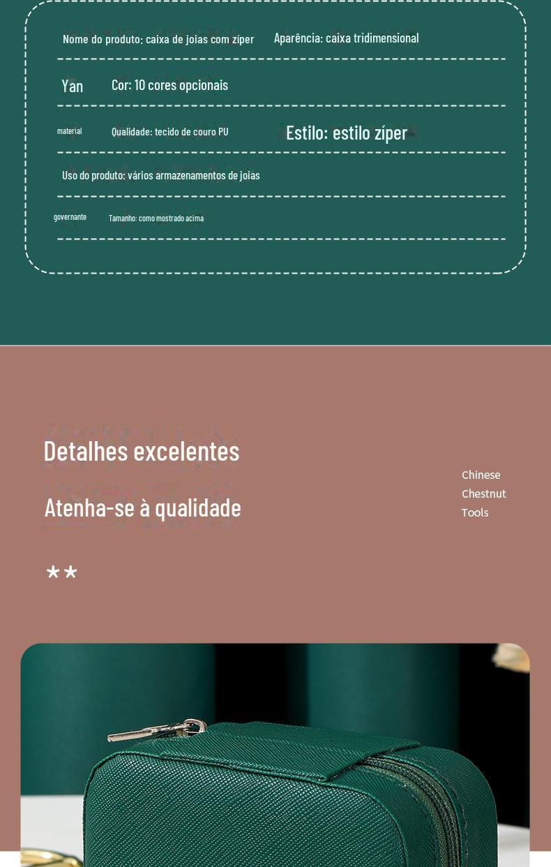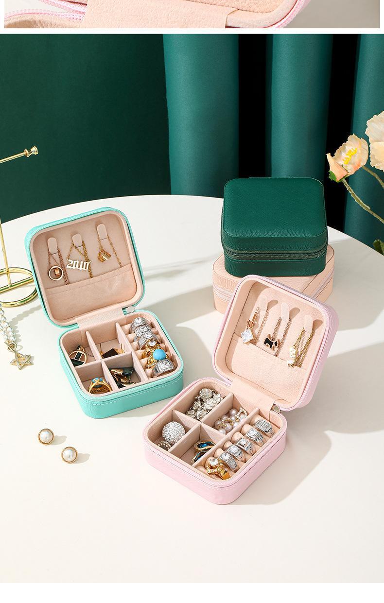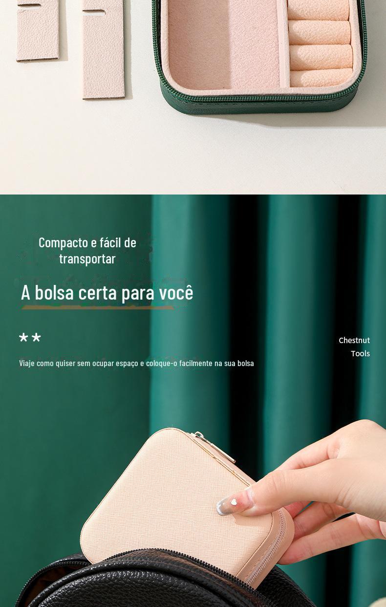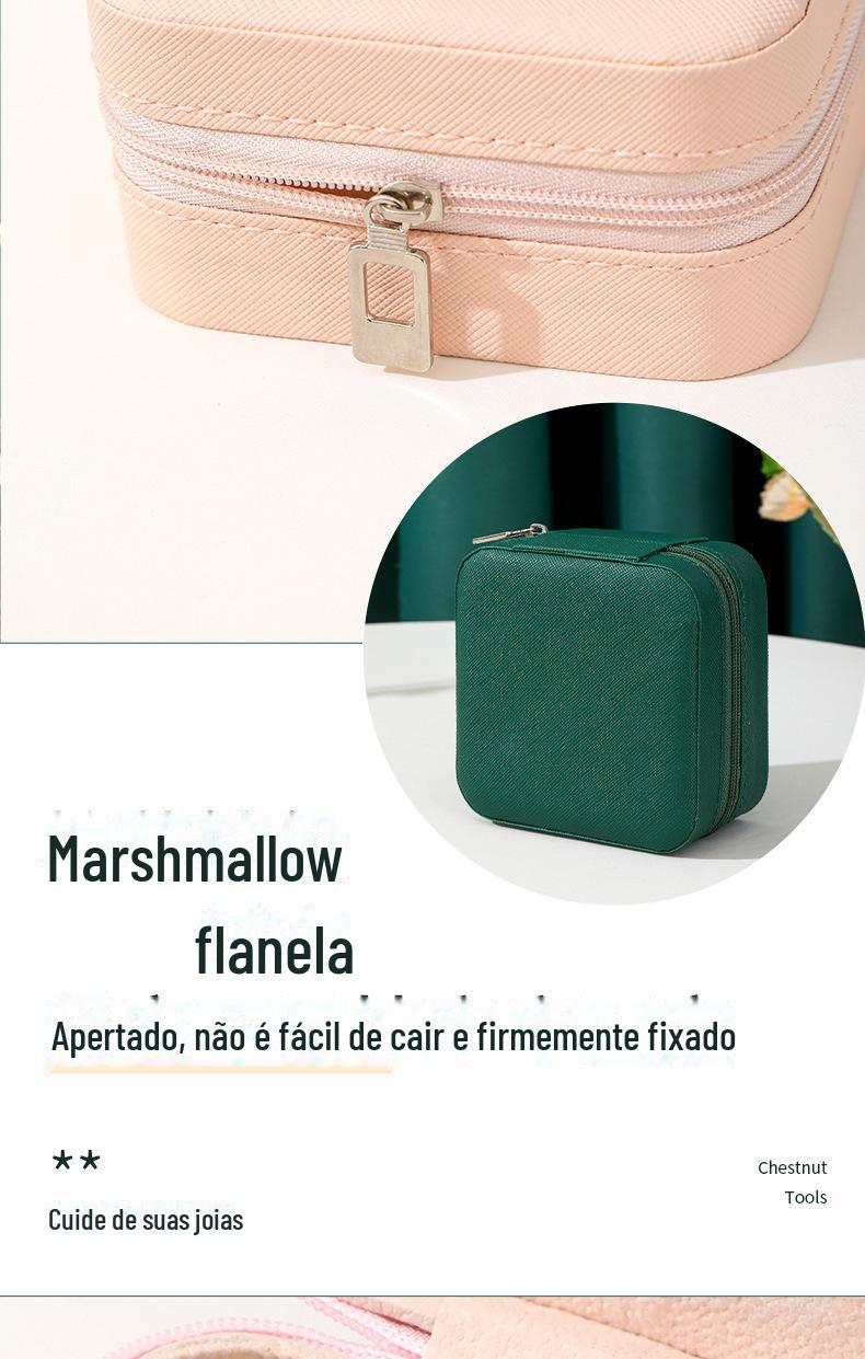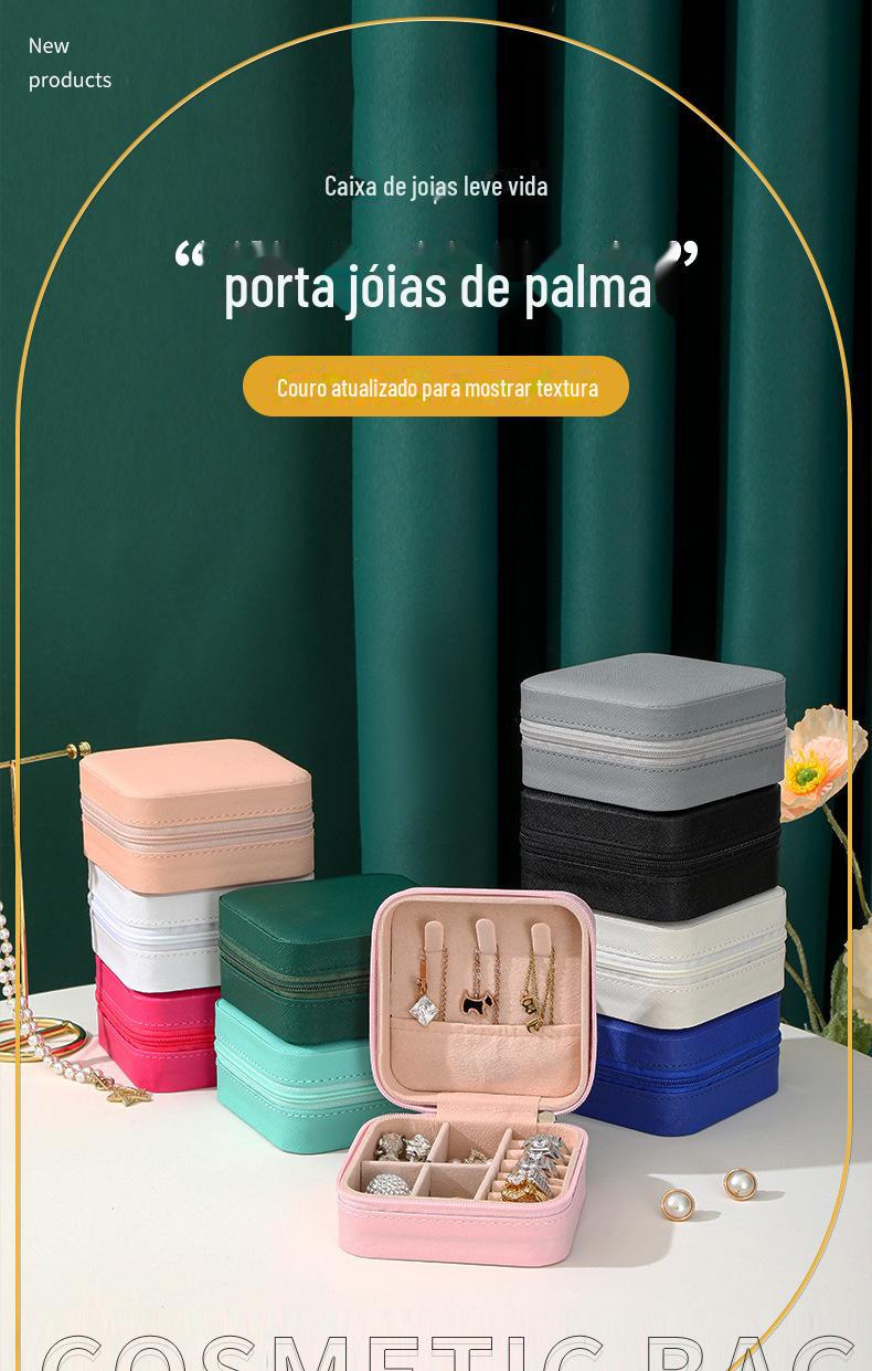 Caixa de joias com zíper portátil, caixa de anéis, colar, brincos, caixa de armazenamento de brincos, macaron, joias, primeira caixa de joias
