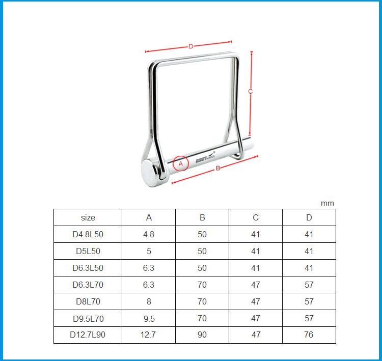 Título em inglês:Aço inoxidável 316 eixo quadrado travamento pino de segurança acoplador pino retentor fazenda