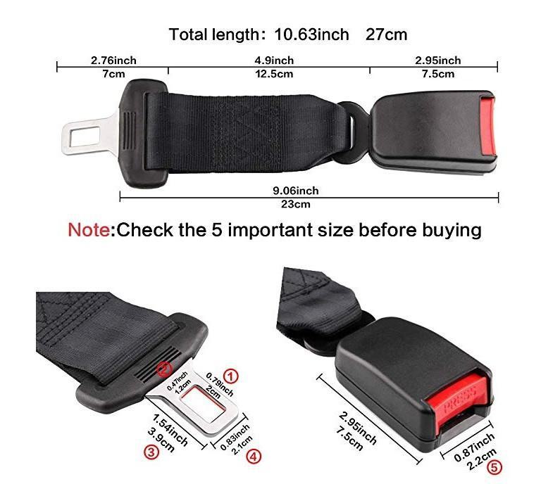Este extensor é adequado para cintos de segurança com lingueta de trava de carro original com largura de 2,1 cm e comprimento superior a 3 cm de inserção. O método de medição é mostrado na figura.
