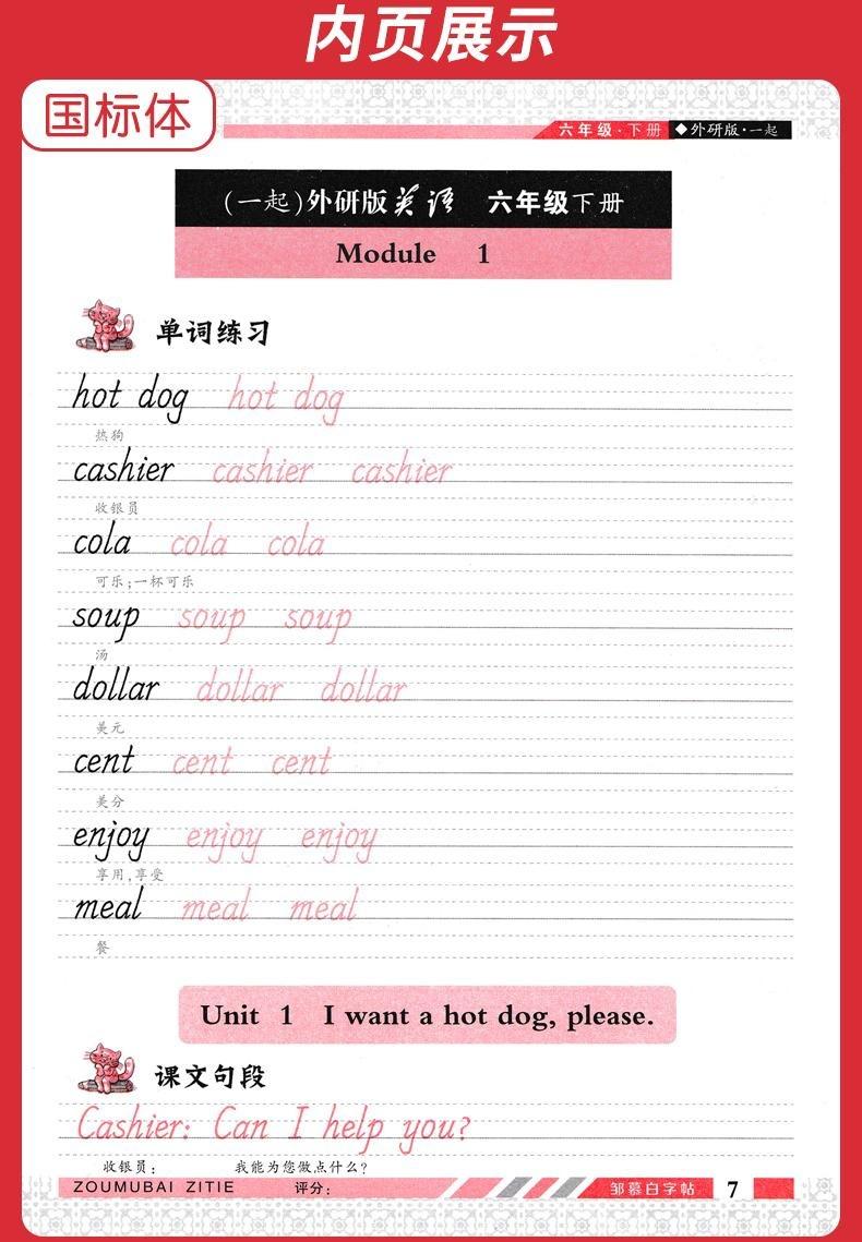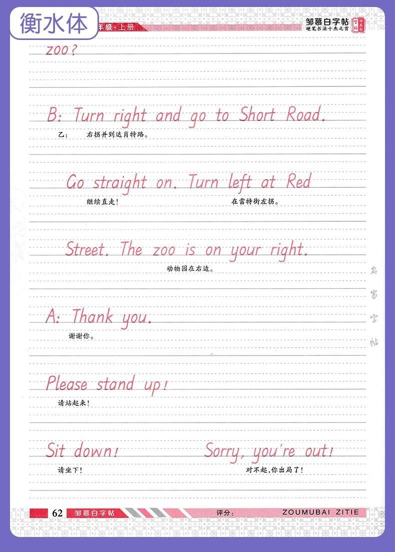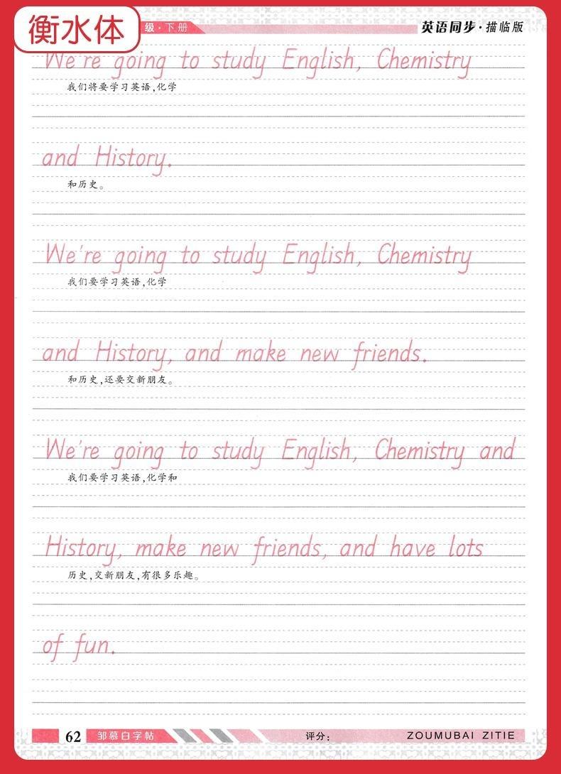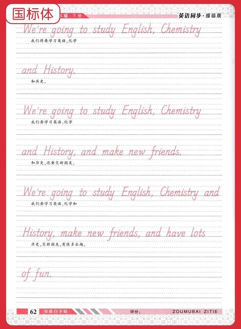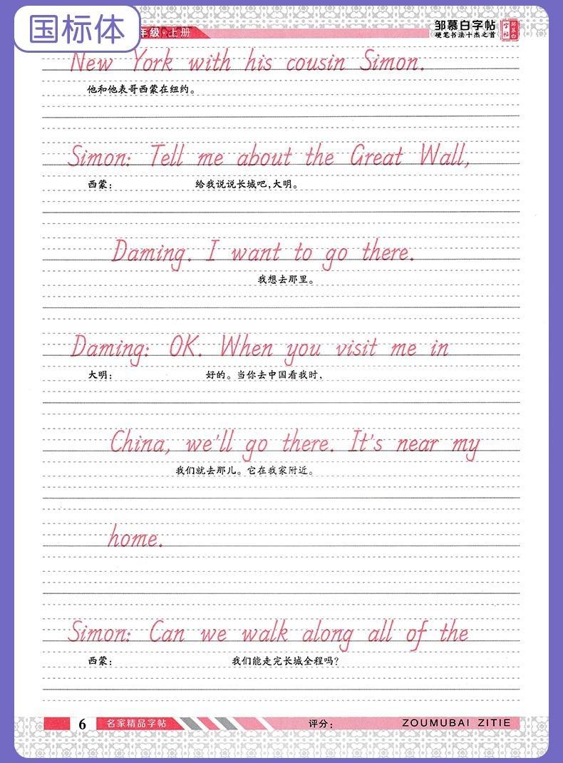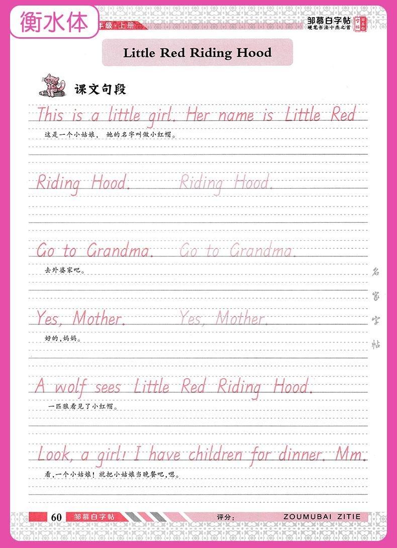 Versão de pesquisa estrangeira Zou Mubai prática inglesa 123456 grau copybook síncrono Hengshui pintura corporal desenho vermelho versão temporária copybook para a prática
