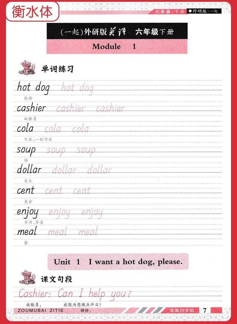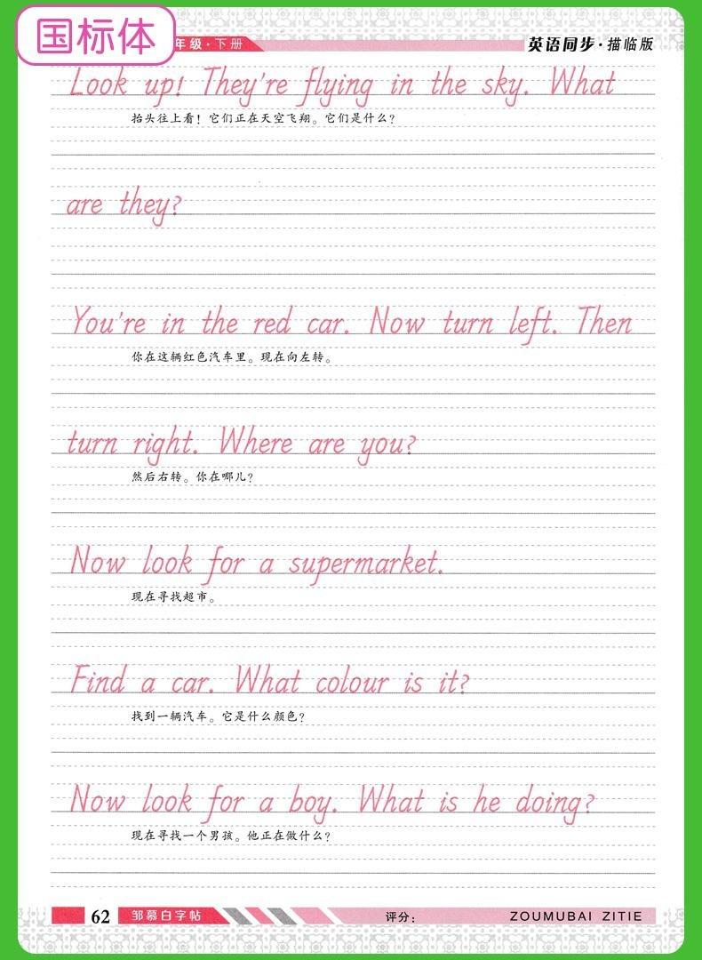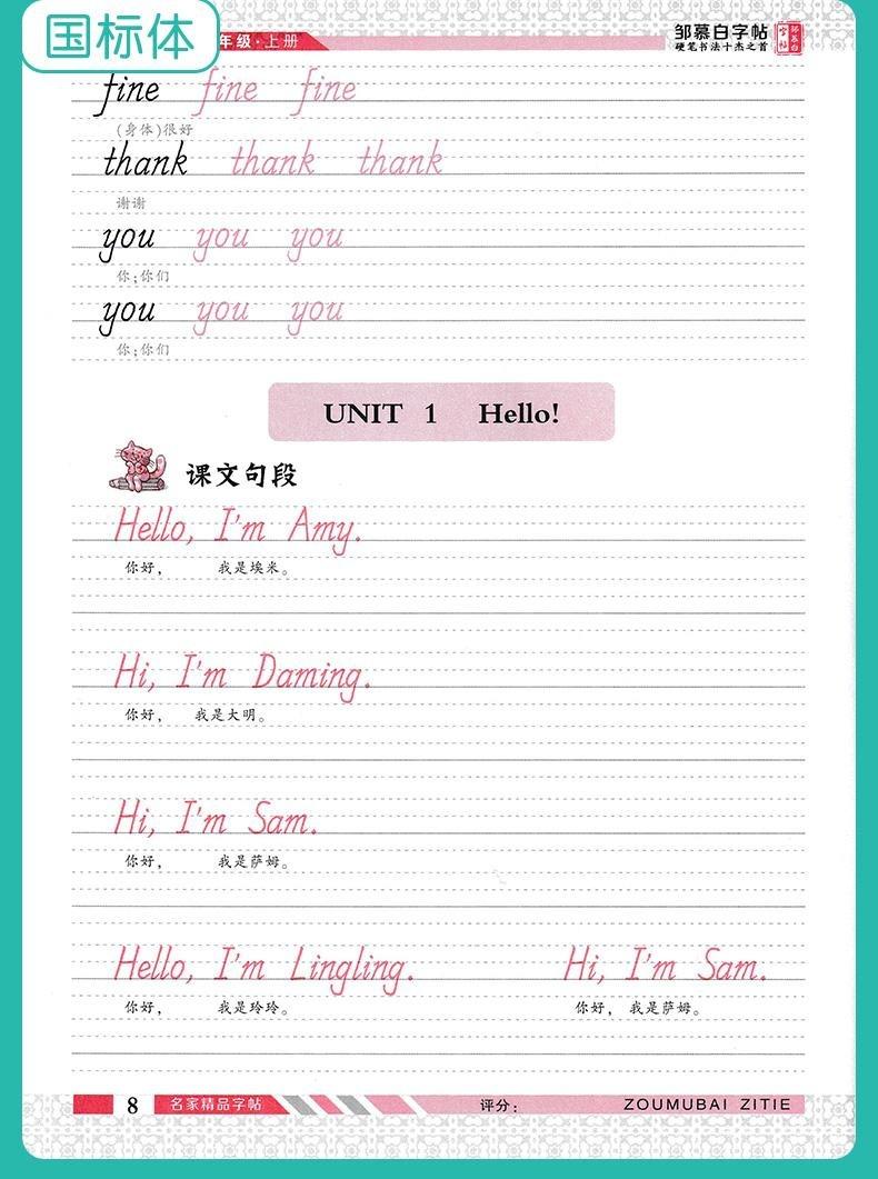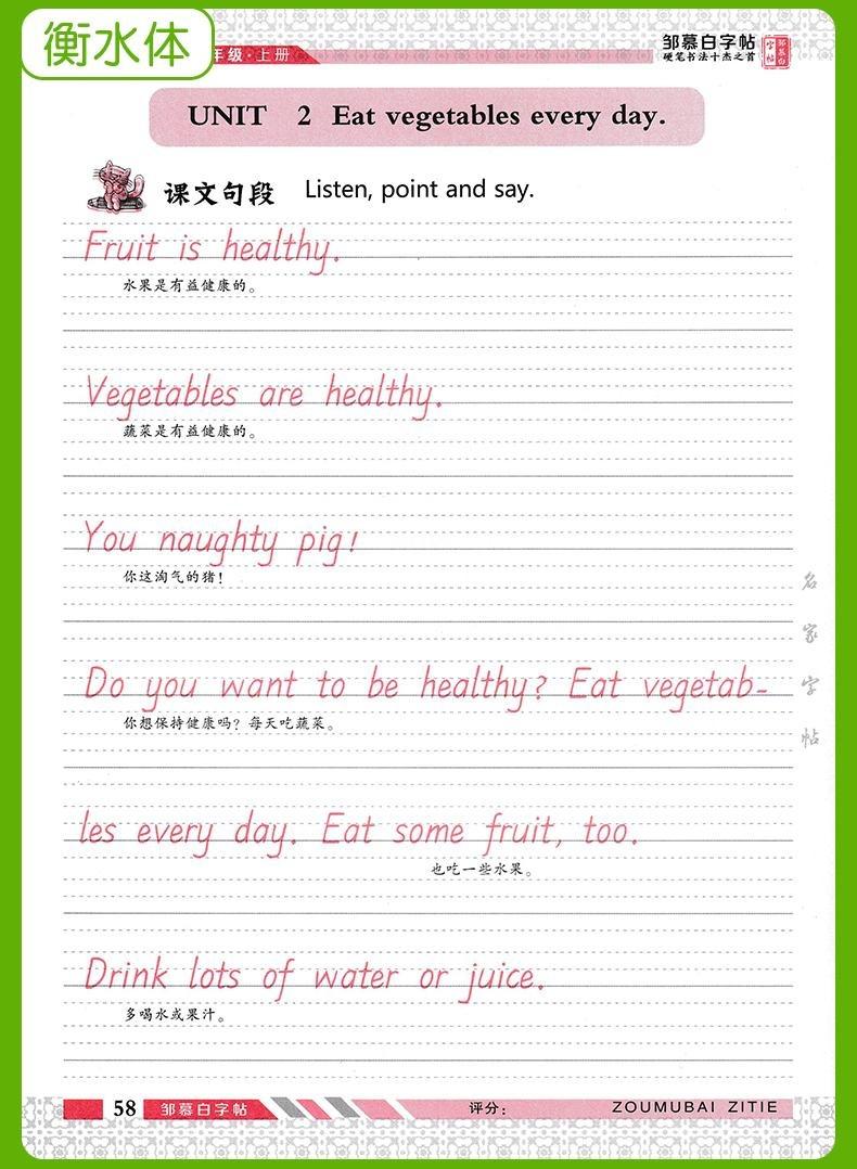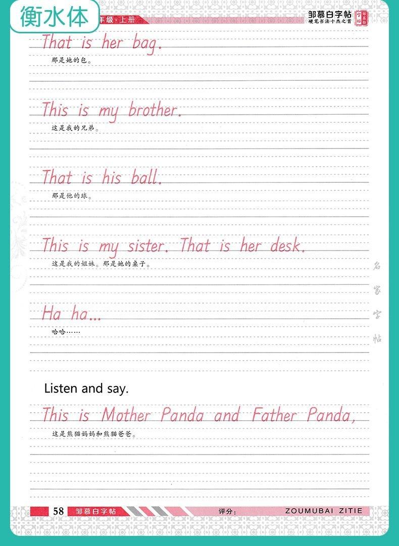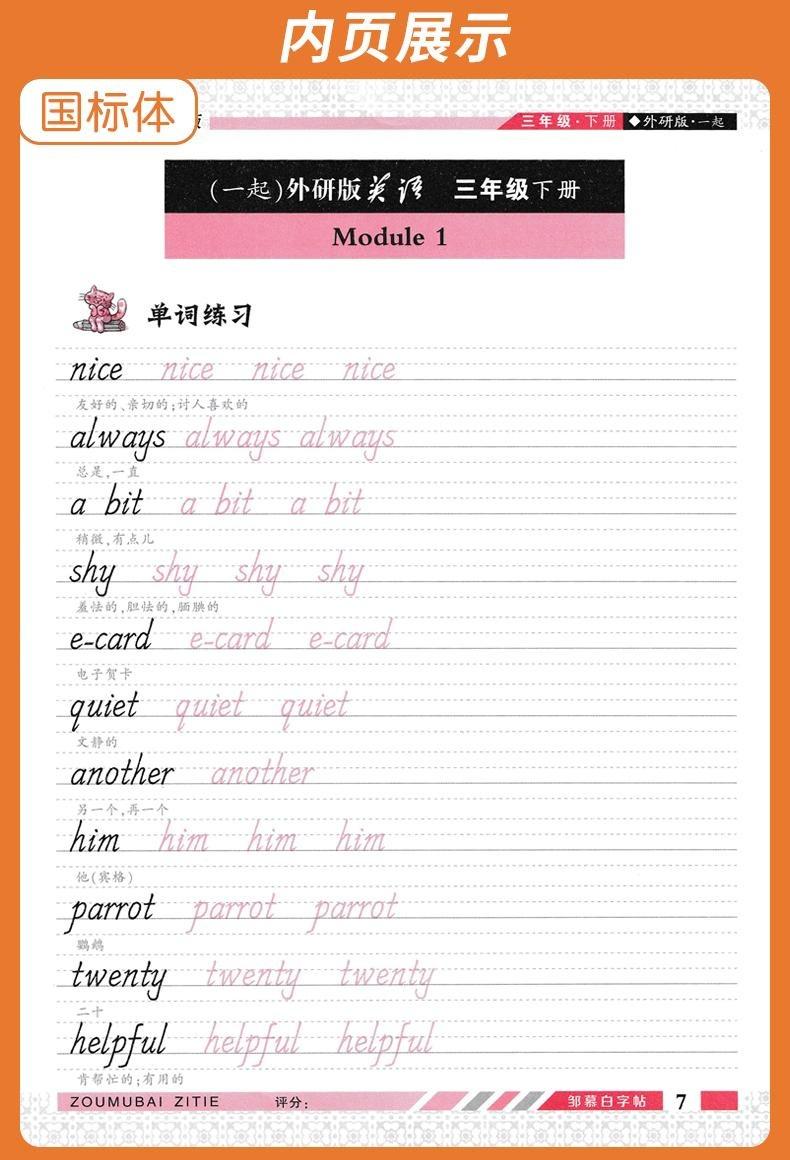 Versão de pesquisa estrangeira Zou Mubai prática inglesa 123456 grau copybook síncrono Hengshui pintura corporal desenho vermelho versão temporária copybook para a prática