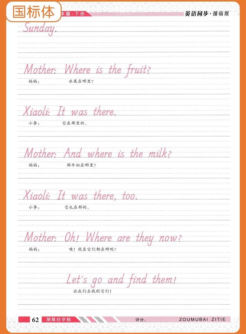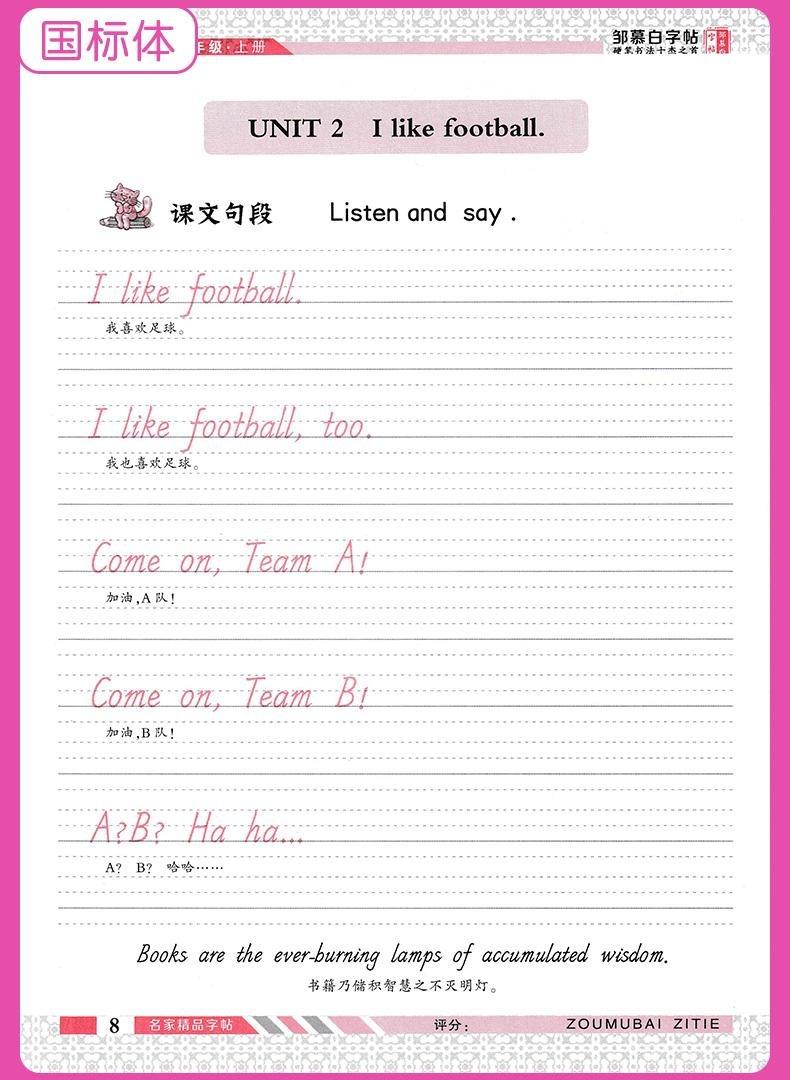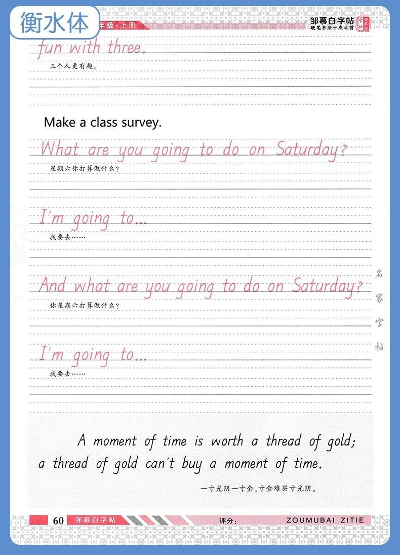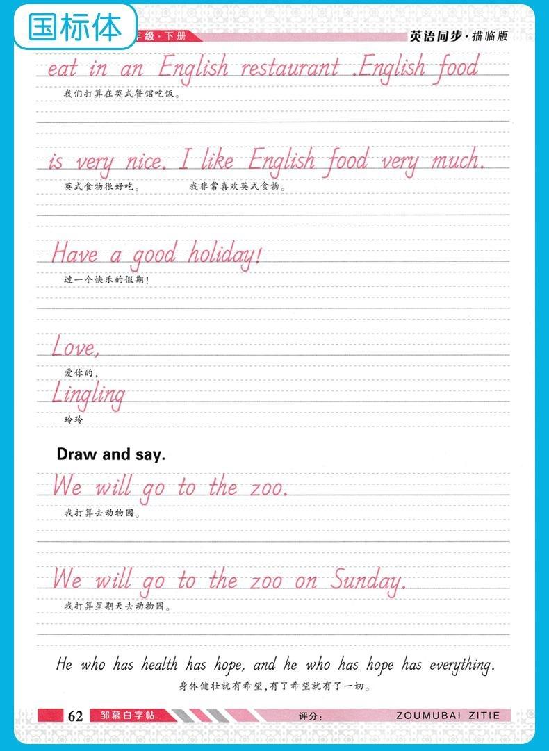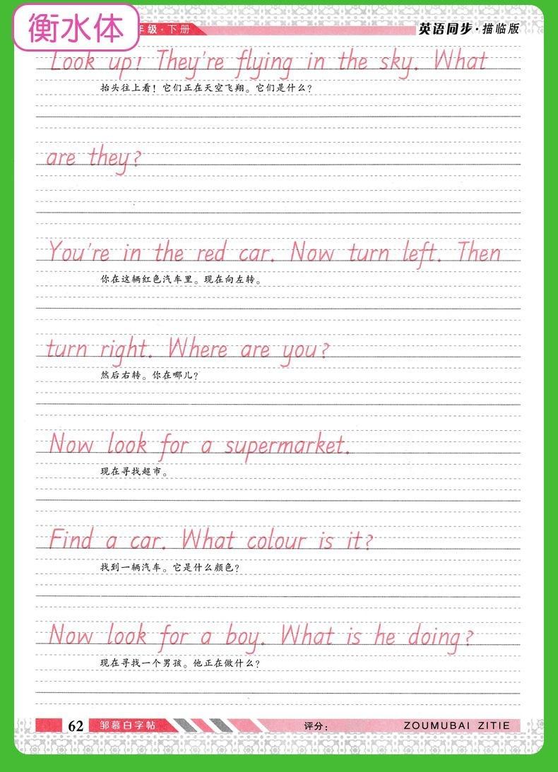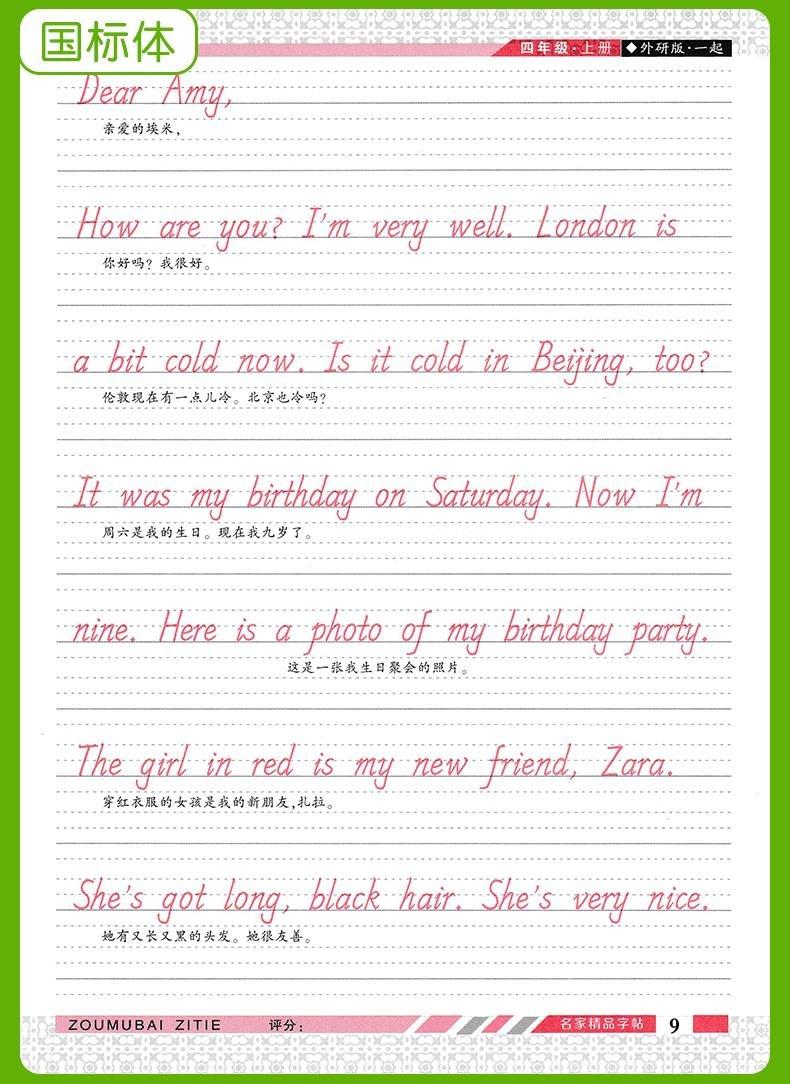 Versão de pesquisa estrangeira Zou Mubai prática inglesa 123456 grau copybook síncrono Hengshui pintura corporal desenho vermelho versão temporária copybook para a prática