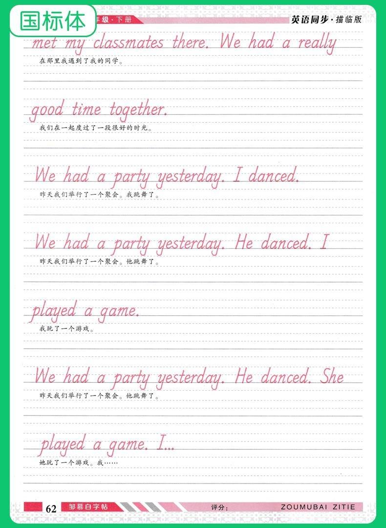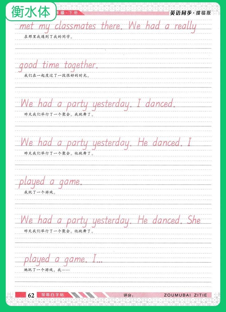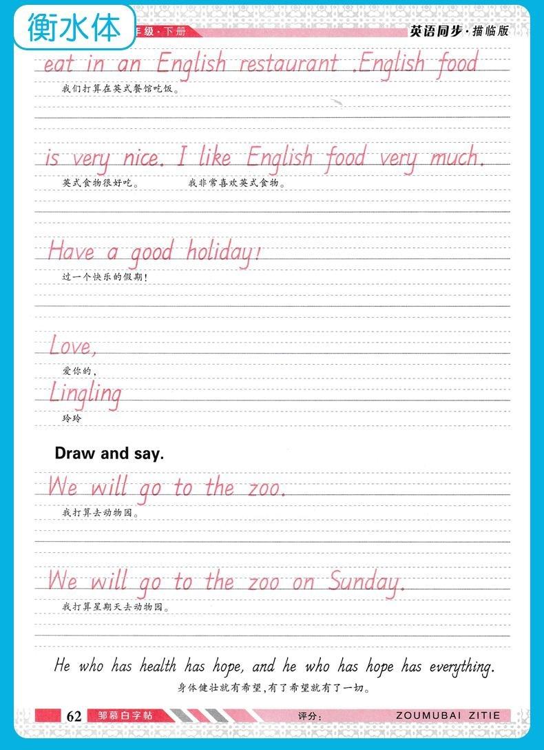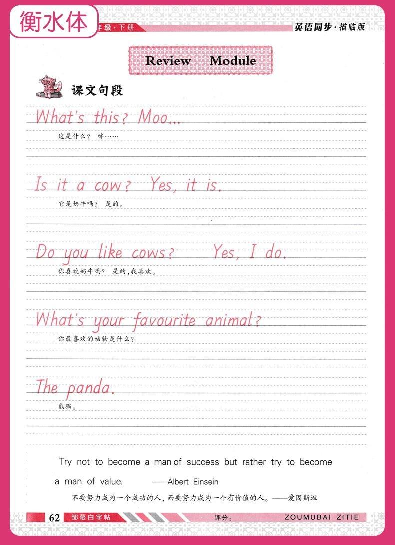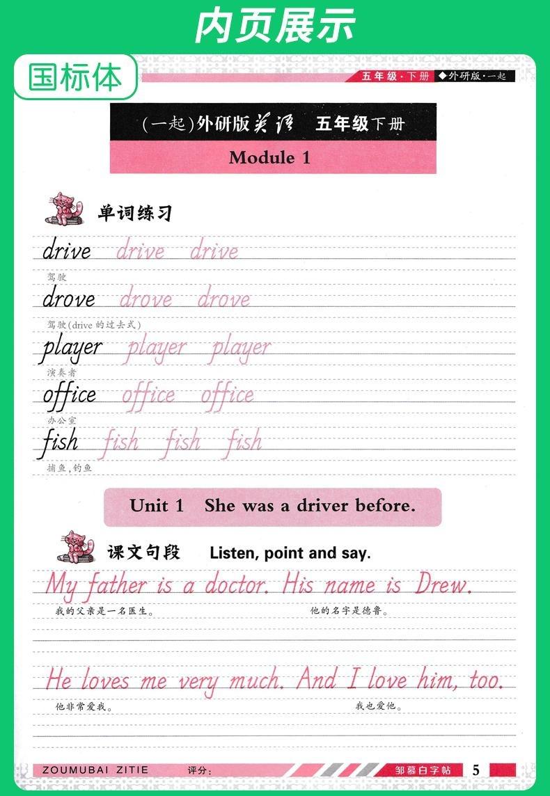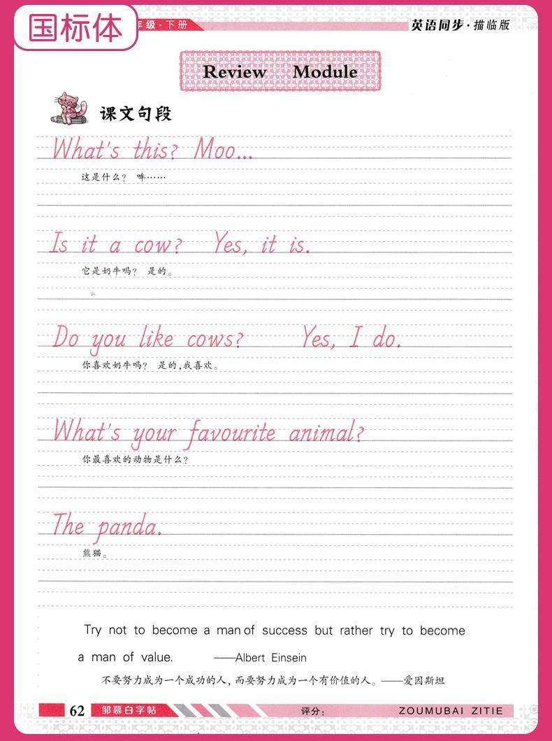 Versão de pesquisa estrangeira Zou Mubai prática inglesa 123456 grau copybook síncrono Hengshui pintura corporal desenho vermelho versão temporária copybook para a prática