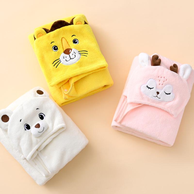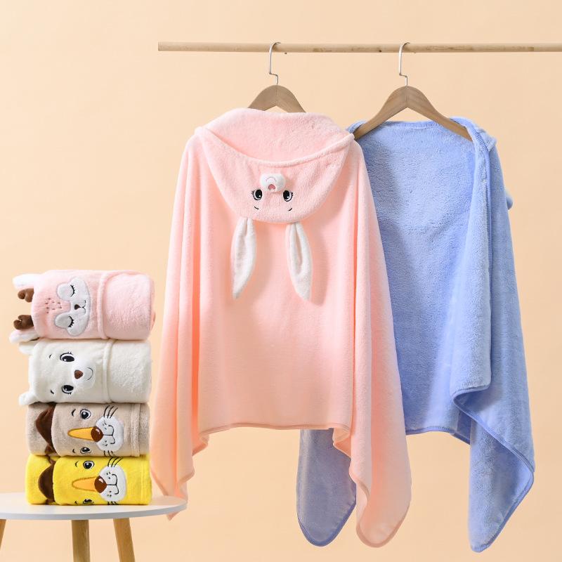 Poncho de Banho para Bebê Toalha Vestível Infantil Capa de Lã Coral com Capuz Roupão Infantil de Desenho Animado com Capuz Lã Coral Macio