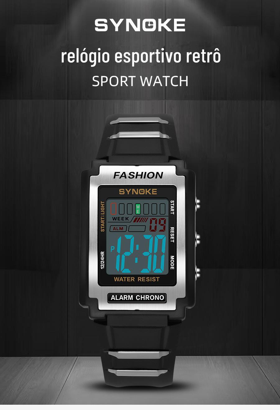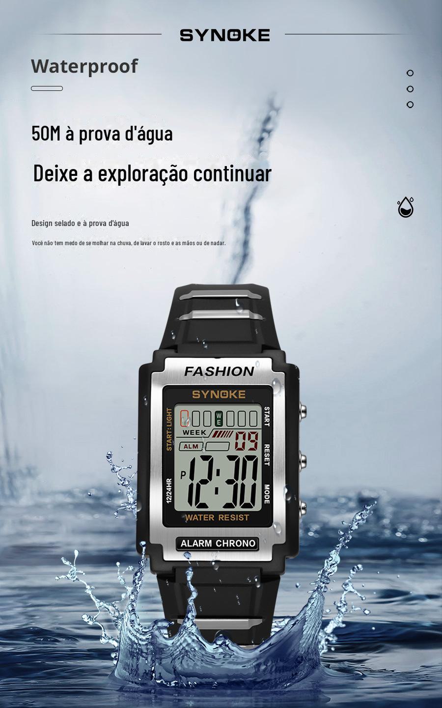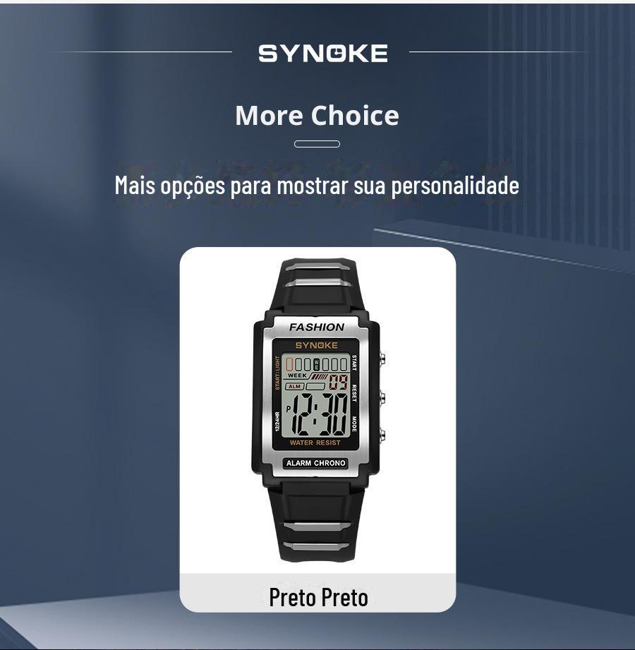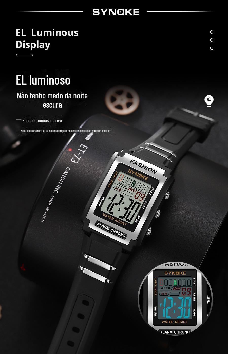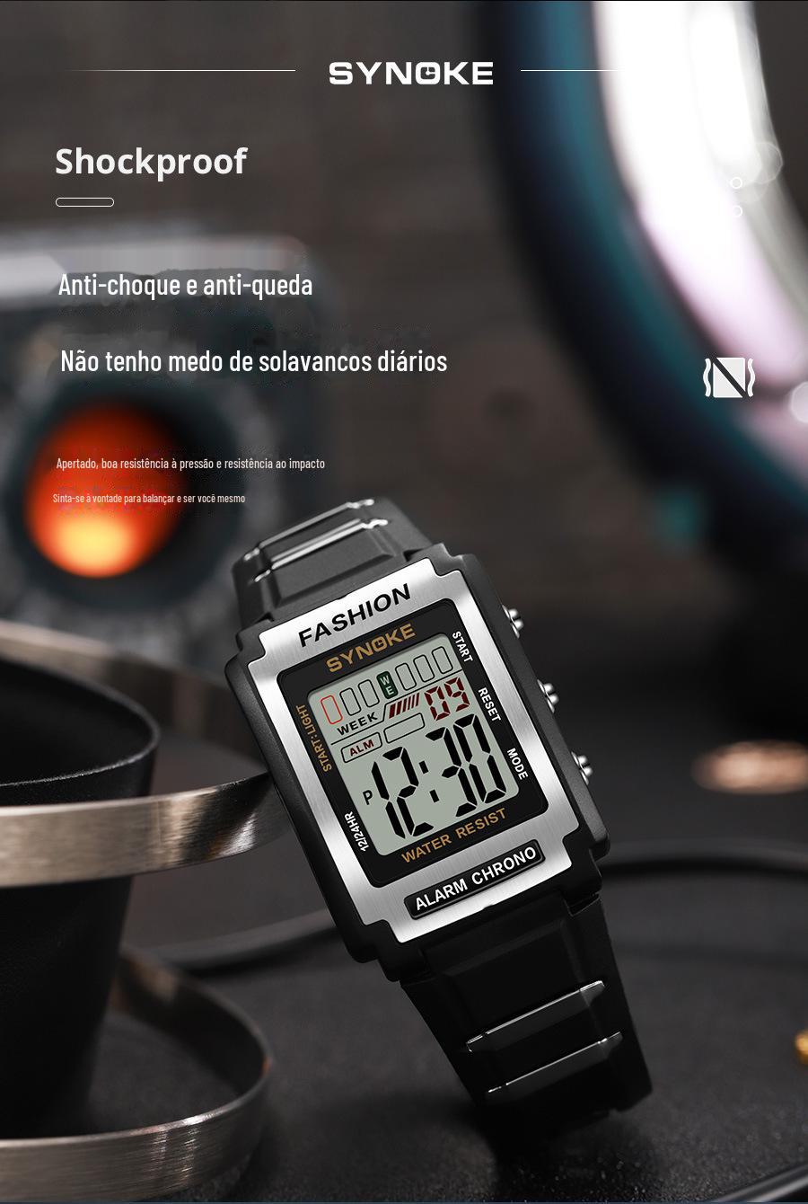 Relógio Digital Esportivo Retangular Synoke Niche À Prova D'água Luminoso Tela Grande Alarme Moderno Retrô
