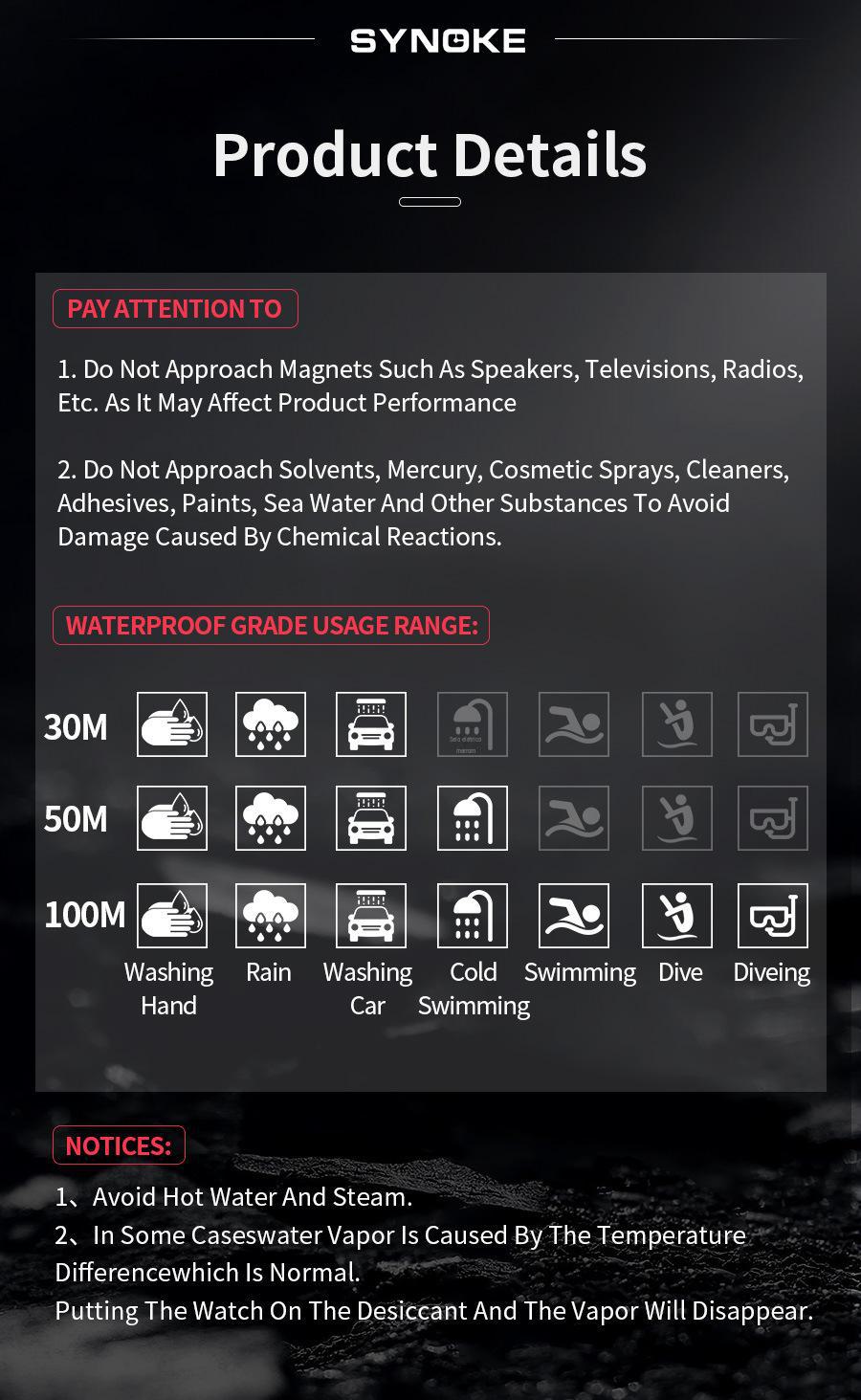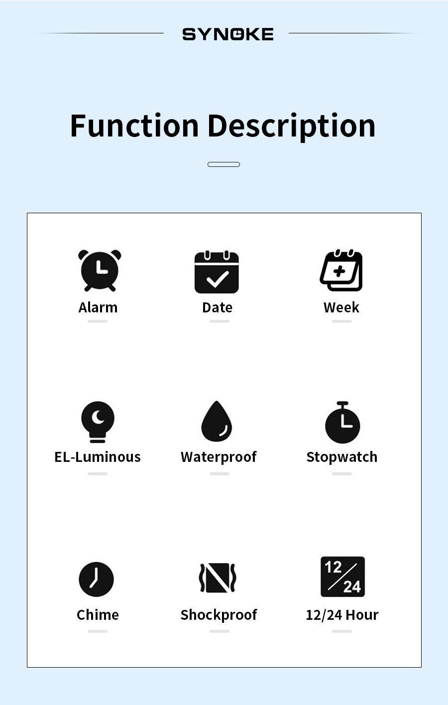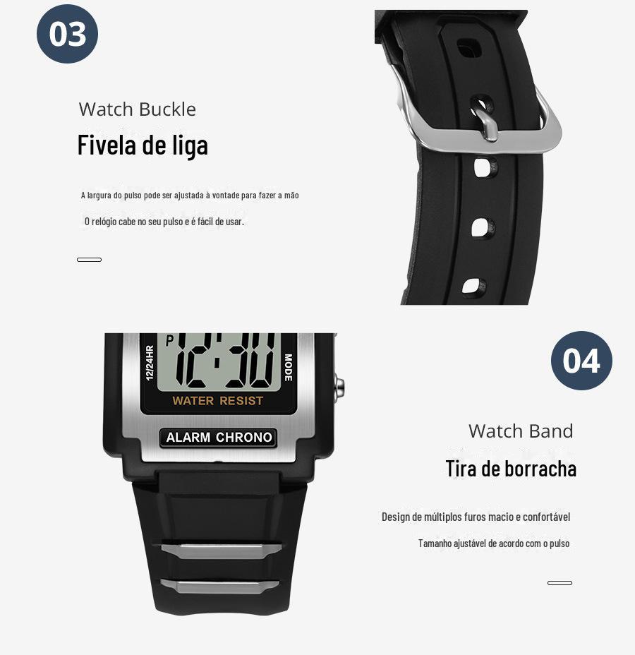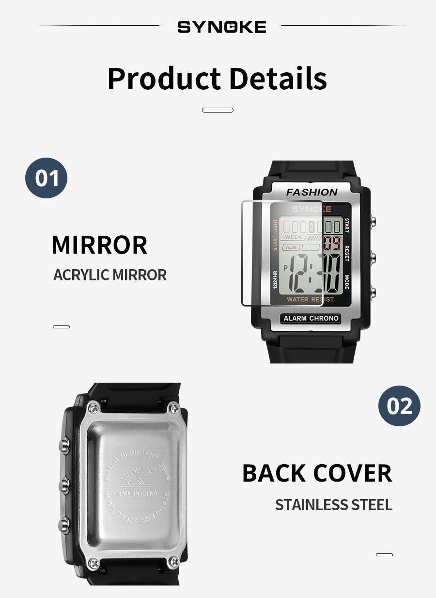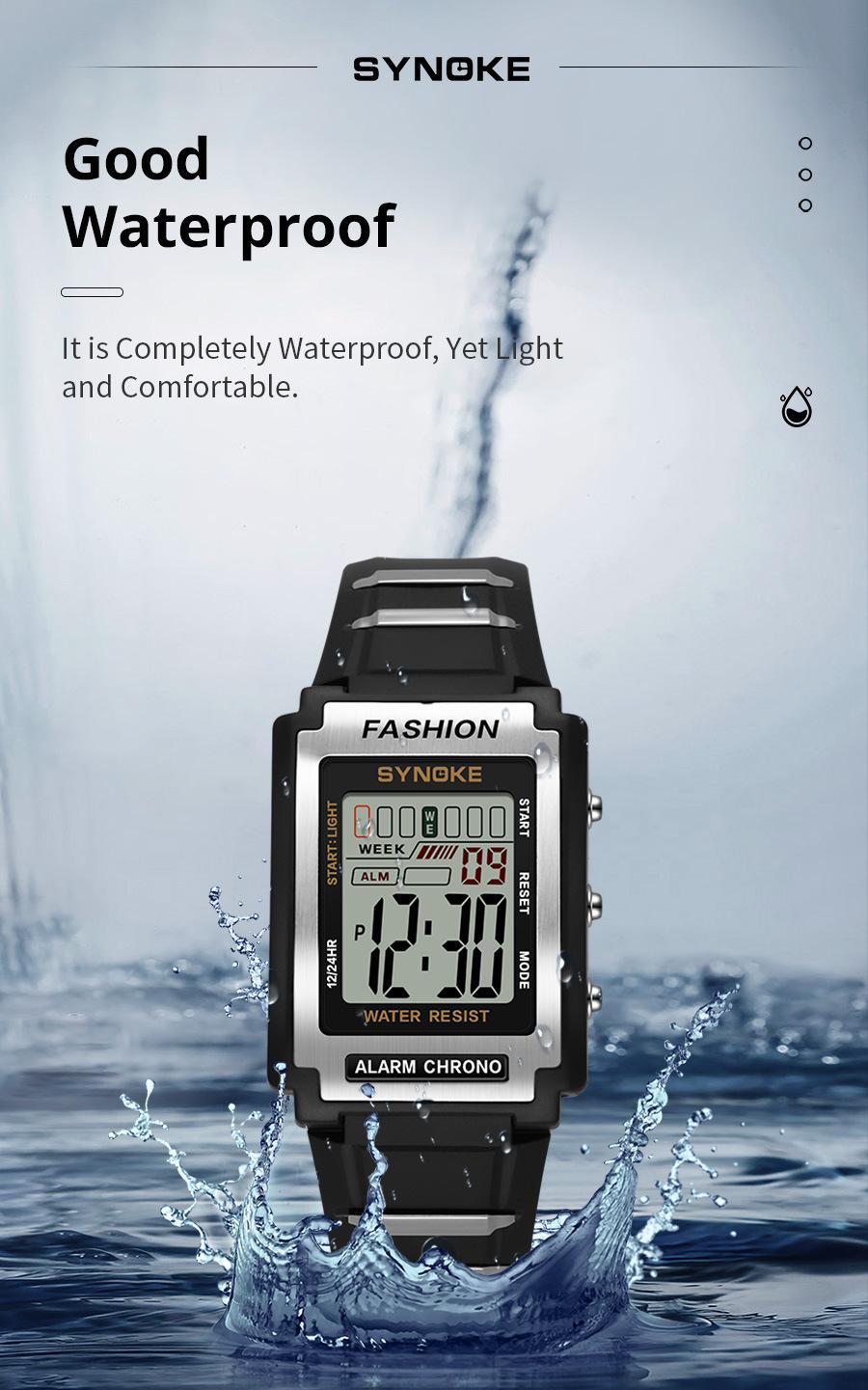 Relógio Digital Esportivo Retangular Synoke Niche À Prova D'água Luminoso Tela Grande Alarme Moderno Retrô