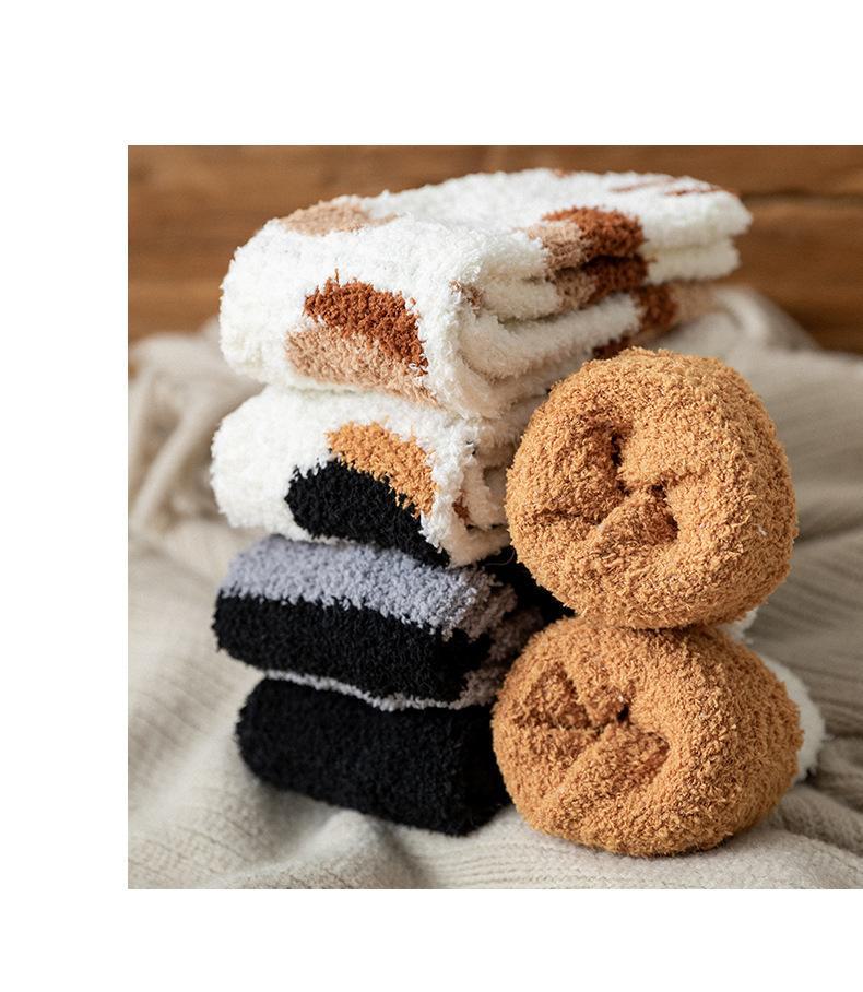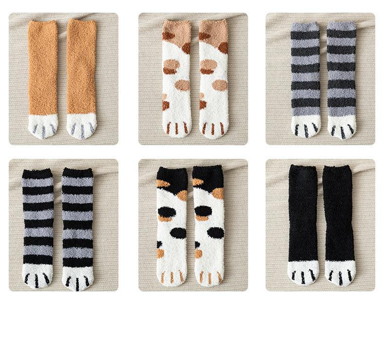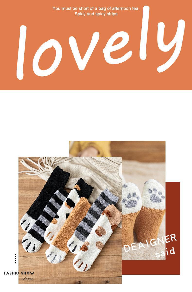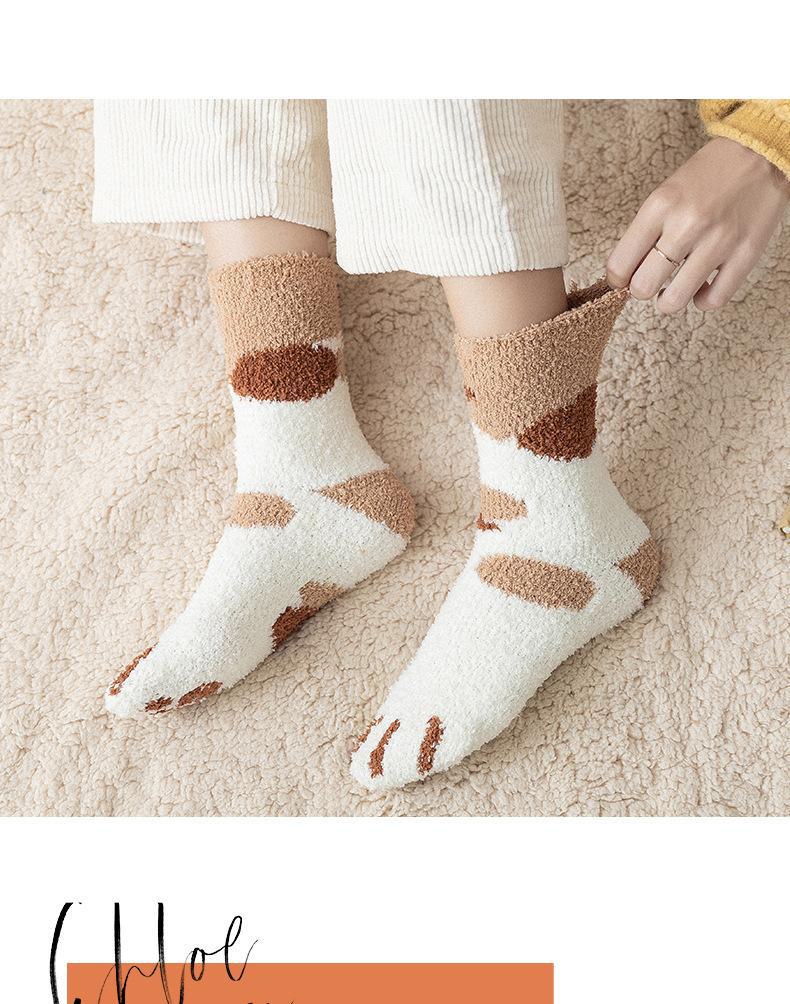 Meias femininas, meias de veludo coral no meio da panturrilha, lã quente com garras de gato, outono e inverno espessadas, além de meias de veludo para dormir, meias de confinamento de tubo longo