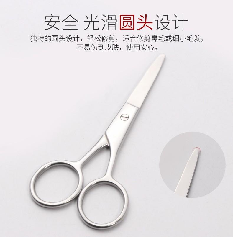 Fábrica Direct de aço inoxidável cabeça redonda Anti-piercing nariz cabelo barba tesoura sentir confortável maquiagem sobrancelha ferramenta de corte tesoura