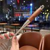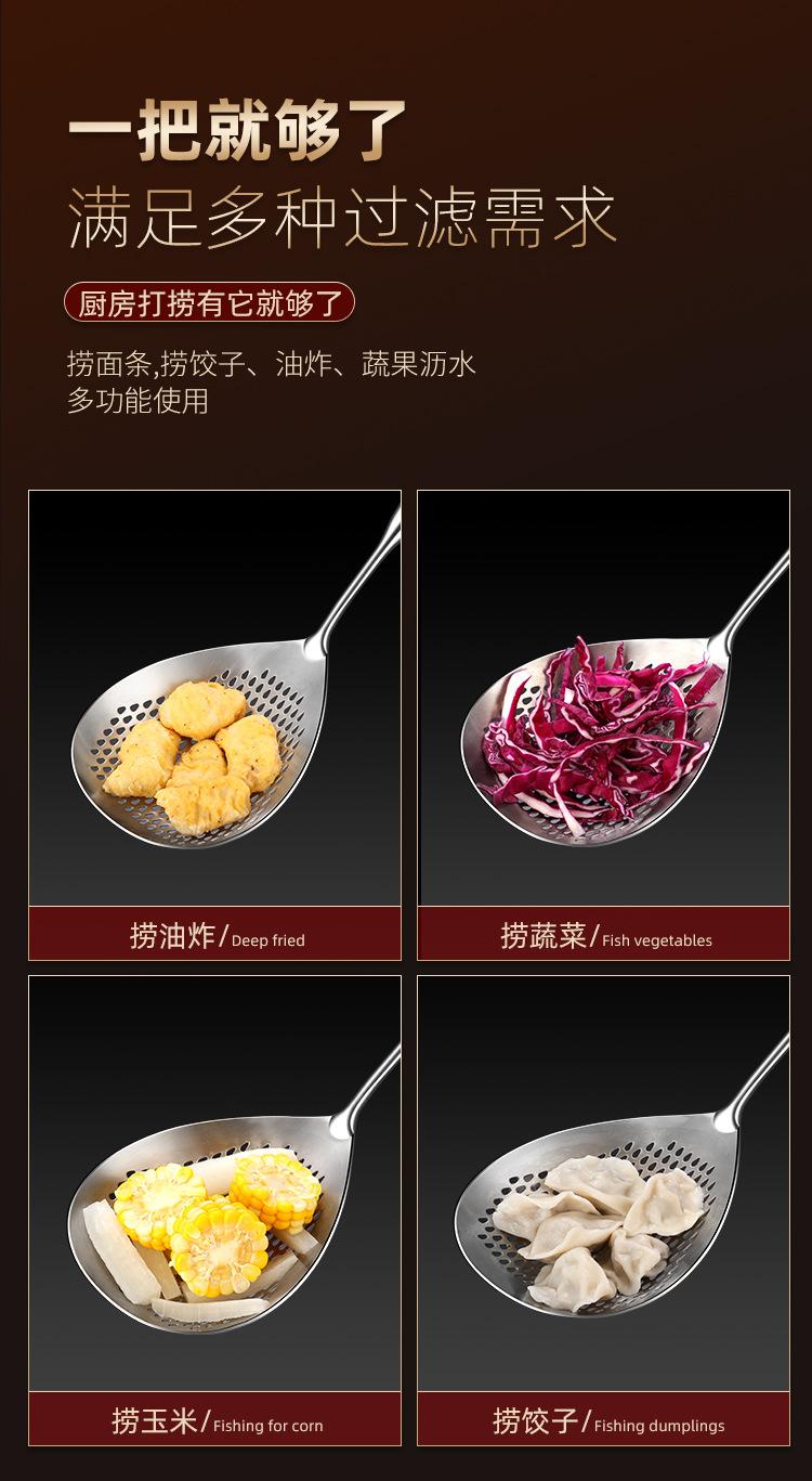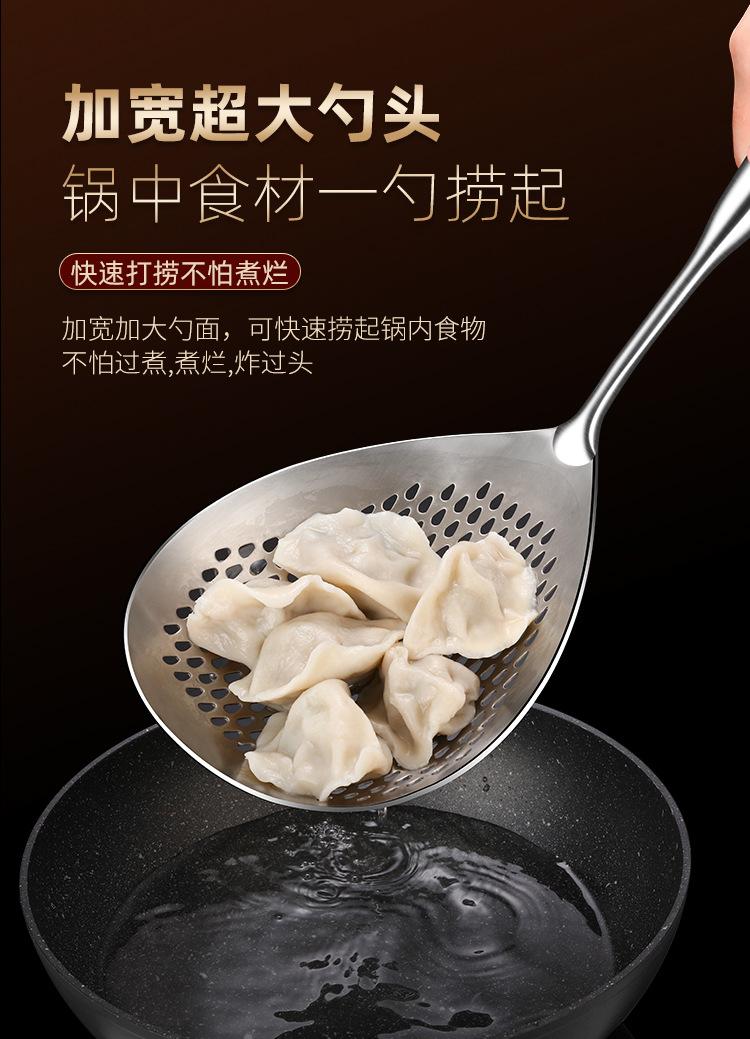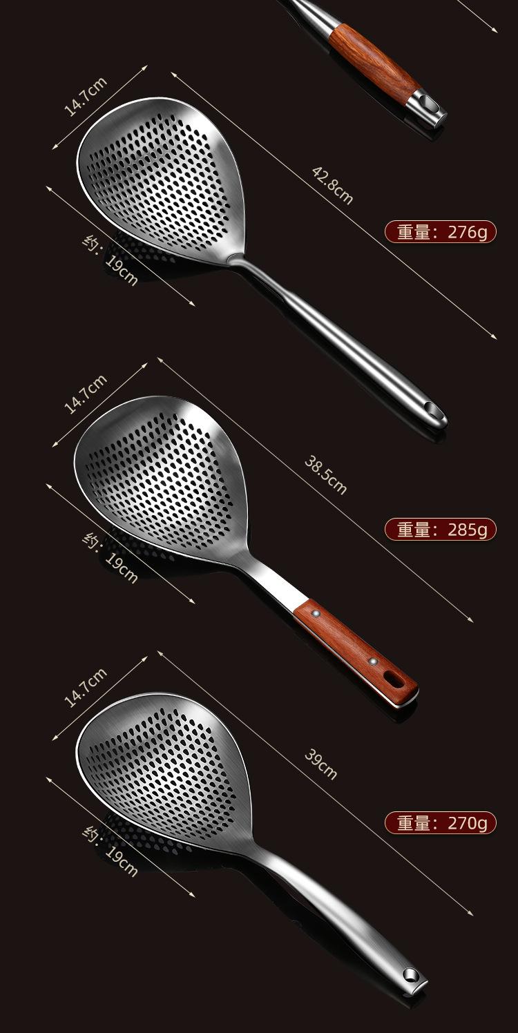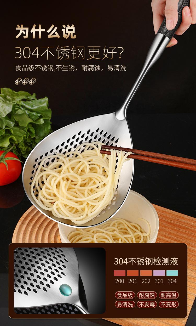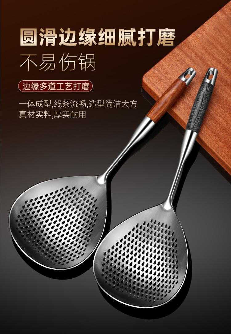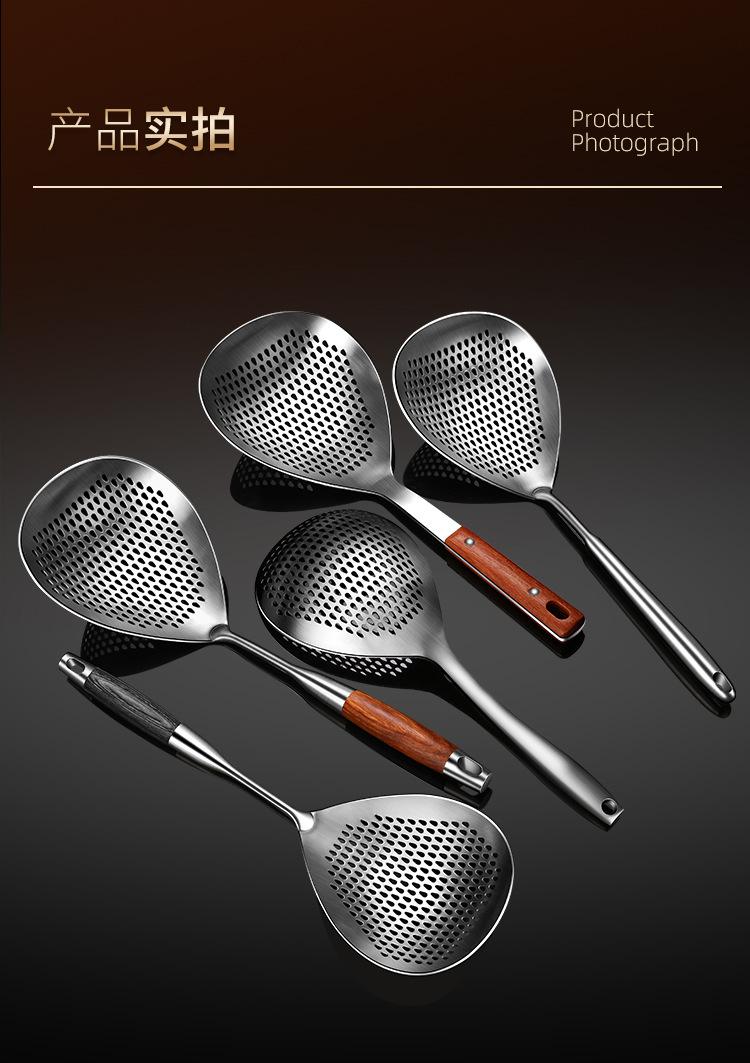304 aço inoxidável grande colander cozinha doméstica bolinho de massa picante panela quente drenando ébano cabo de madeira colher de malha grande