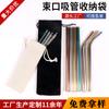 Fornecimento direto da fábrica bolsa portátil de palha aço inoxidável palha bolsa de armazenamento elástica talheres palha saco de embalagem com cordão atacado