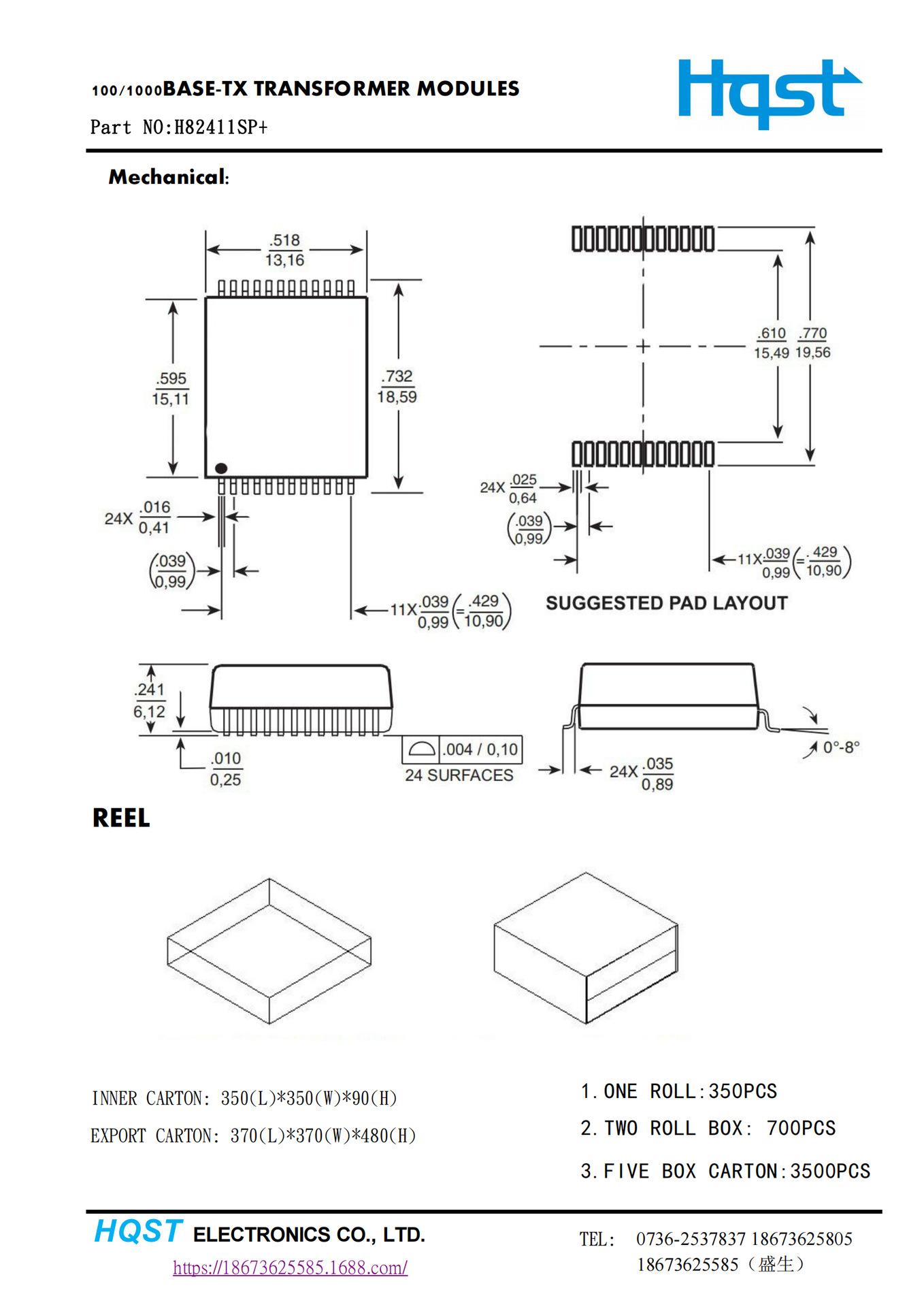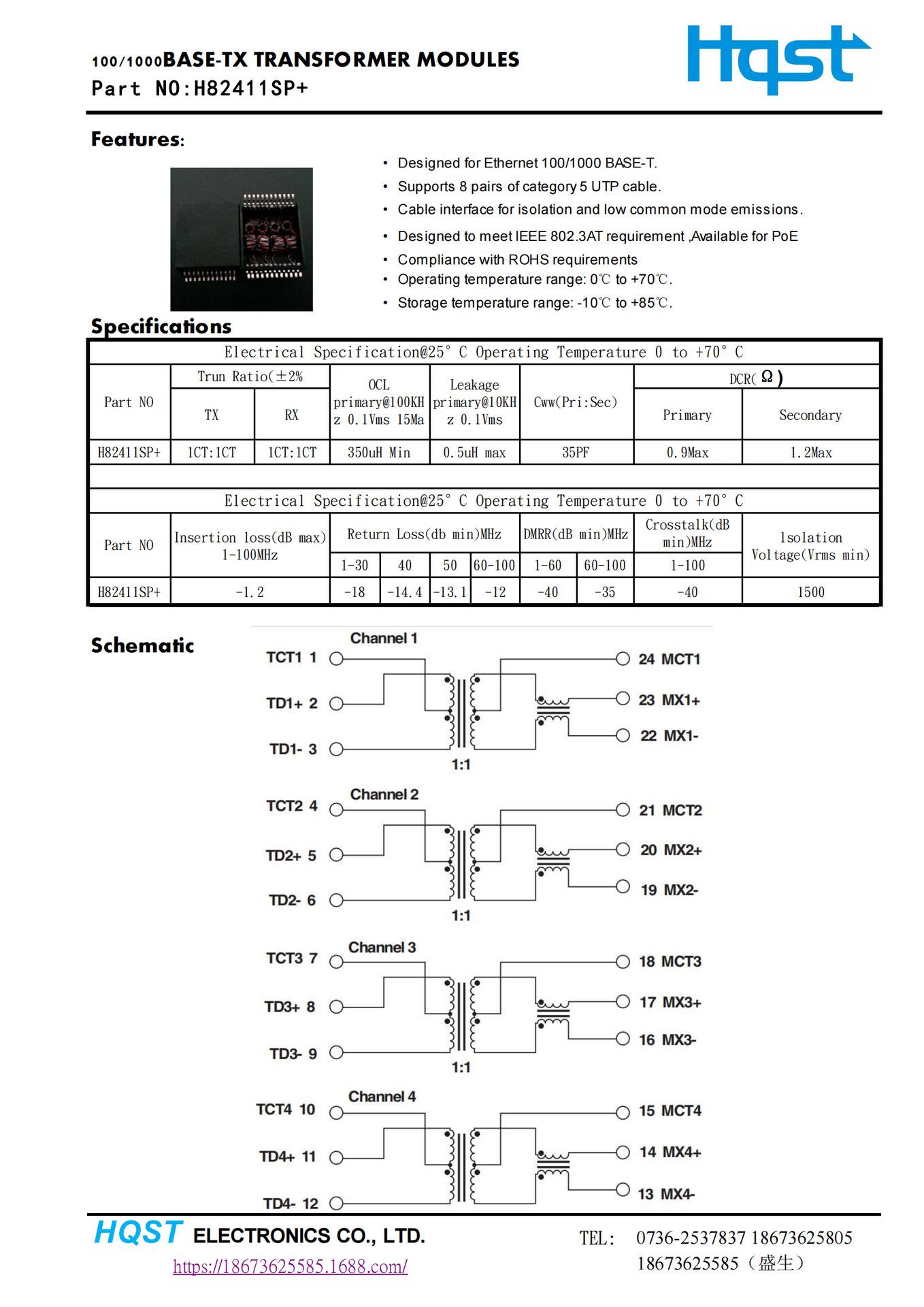 ● Transformador Gigabit Ethernet 100/1000BASE-TX (porta única Gigabit, porta dupla Gigabit, transformador de rede de quatro portas G-bit)