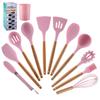 Ponto transfronteiriço de silicone utensílios de cozinha domésticos antiaderentes panela de cozimento pá colher de panificação cor de madeira punho suprimentos de cozinha